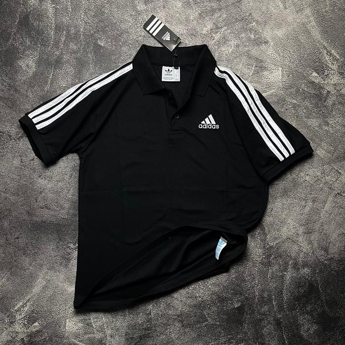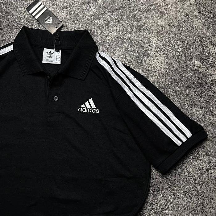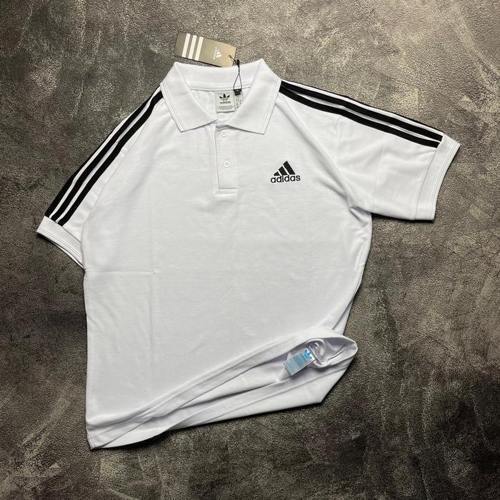 POLO ADIDAS 3 STRAPE BAHAN PIQUE PREMIUM KAOS KRAH ADIDAS - PUTIH, M