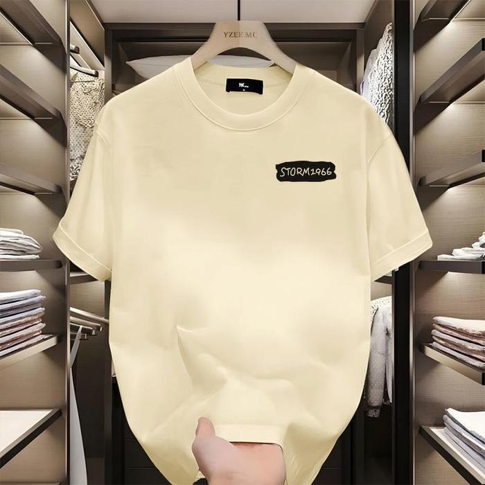 PROMOSI T-SHIRT LENGAN PENDEK PRIA MUSIM PANAS GAYA BARU TREN LEHER BULAT LONGGAR PAKAIAN ATASAN PRIA LENGAN SETENGAH KATUN PRIA KAOS BAJU COWOK - PUTIH, S