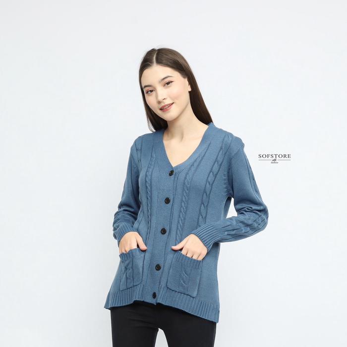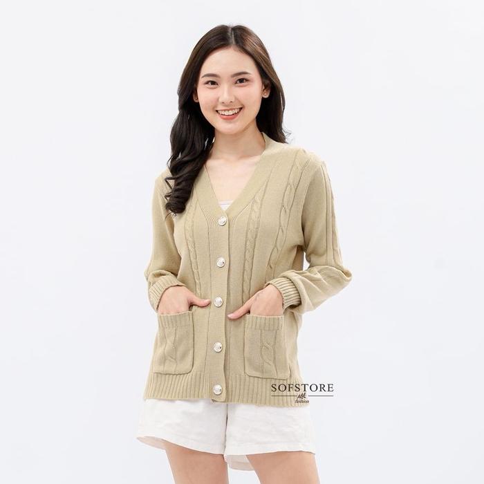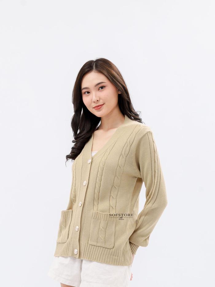 IRA CARDIGAN RAJUT CABLE PREMIUM OUTER CARDI ATASAN WANITA MOTIF CABLE KARDIGAN - IRA - CREAM