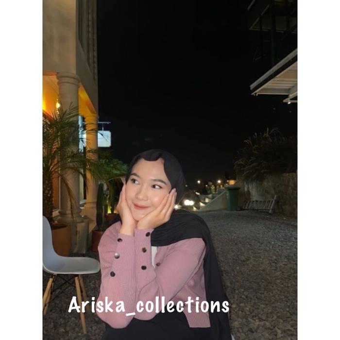 ARISKA CARDIGAN RAJUT OUTER BASIC KANCING PREMIUM -TARLA CARDIGAN VIRAL KOREA - HITAM