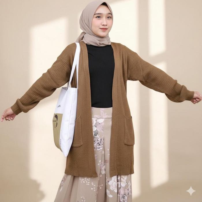CARDIGAN BELLE RAJUT | CARDIGAN WANITA PANJANG BAHAN PREMIUM TEBAL NYAMAN LEMBUT OUTER OVERSIZE - NILA, ALLSIZE
