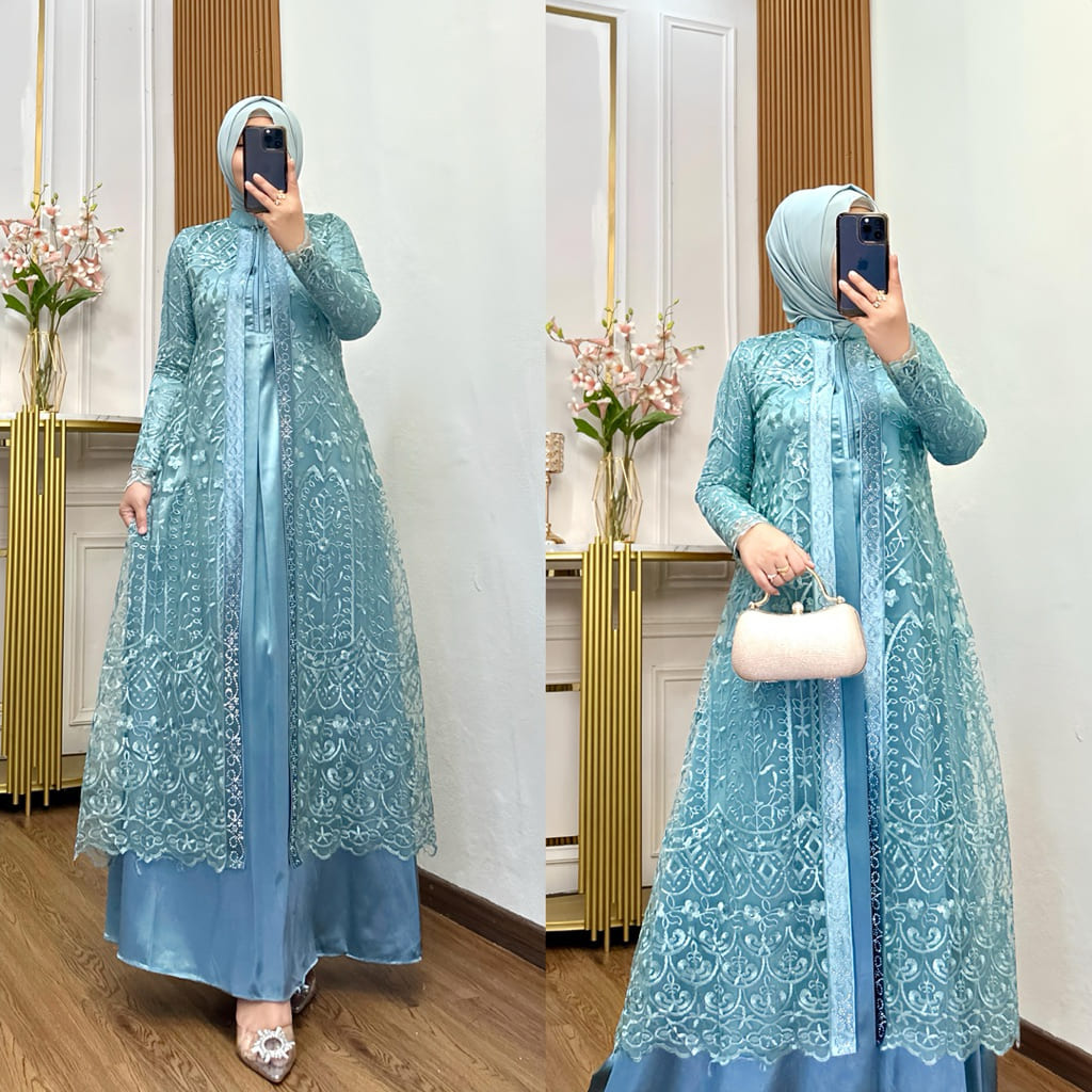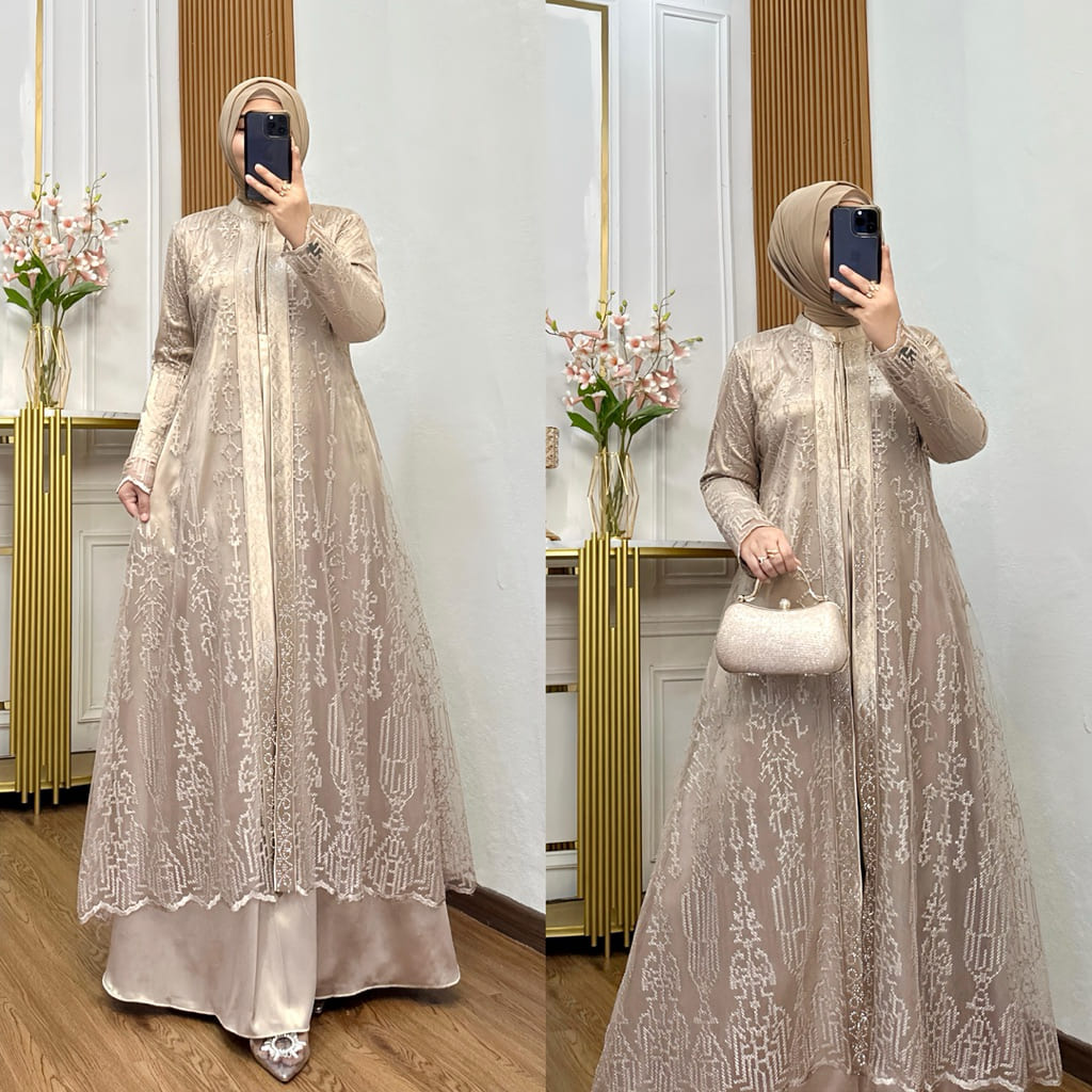 Nadira Dress 2 Busui Bahan Organza Bordir Dengan Detai Payet Mote Gamis Pesta Baju Kondangan Mewah Tersedia Ukuran Jumbo