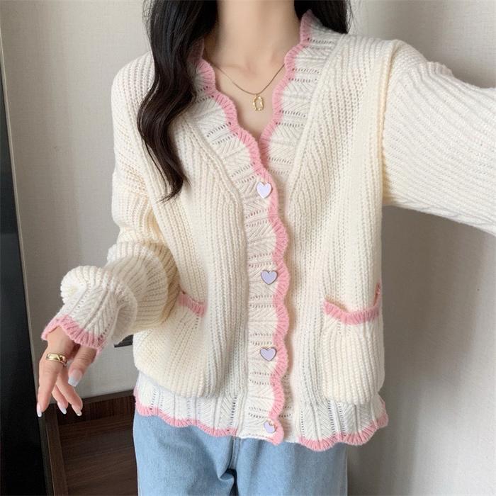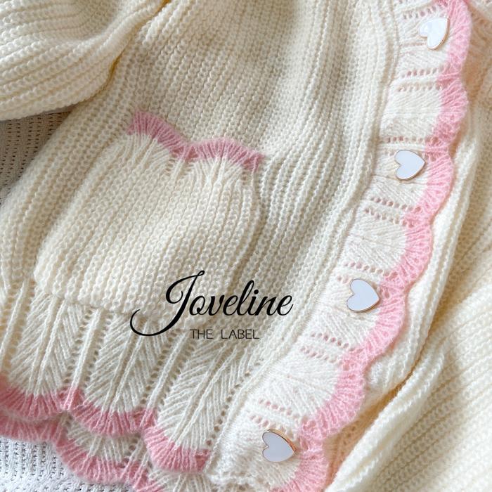 JOVELINE - LD120 CARDIGAN KOREA KANCING LOVE ULIR SWEATER RAJUT SANTAI KNITWEAR AAE2 PANJANG ATASAN - PINK