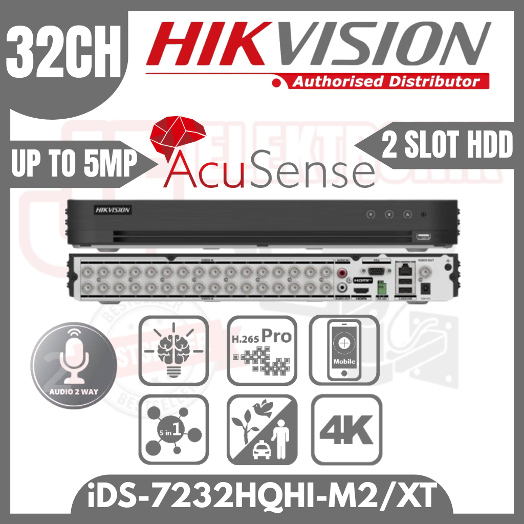 Dvr Hikvision 32 Channel Ids-7232Hqhi-M2/Xt Up To 5Mp 2 Slot Hdd Acusense Digital Video Recorder