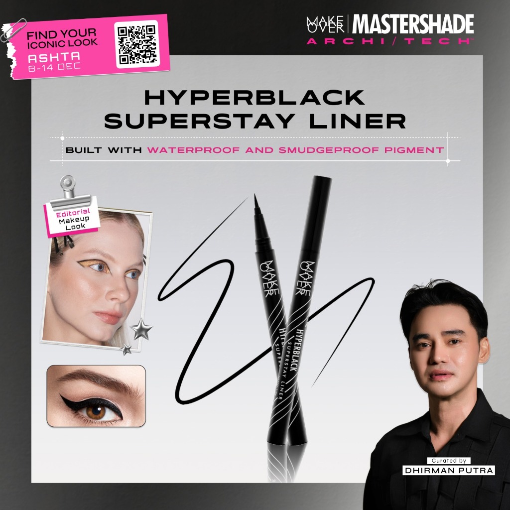 MAKE OVER Hyperblack Superstay Liner - Eyeliner BEST SELLER Hitam Pigmented Waterproof Smudgeproof Tahan Seharian
