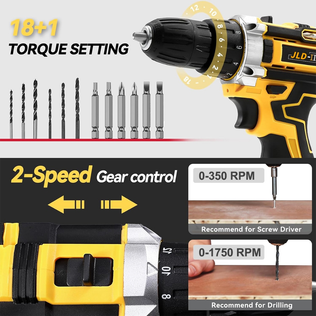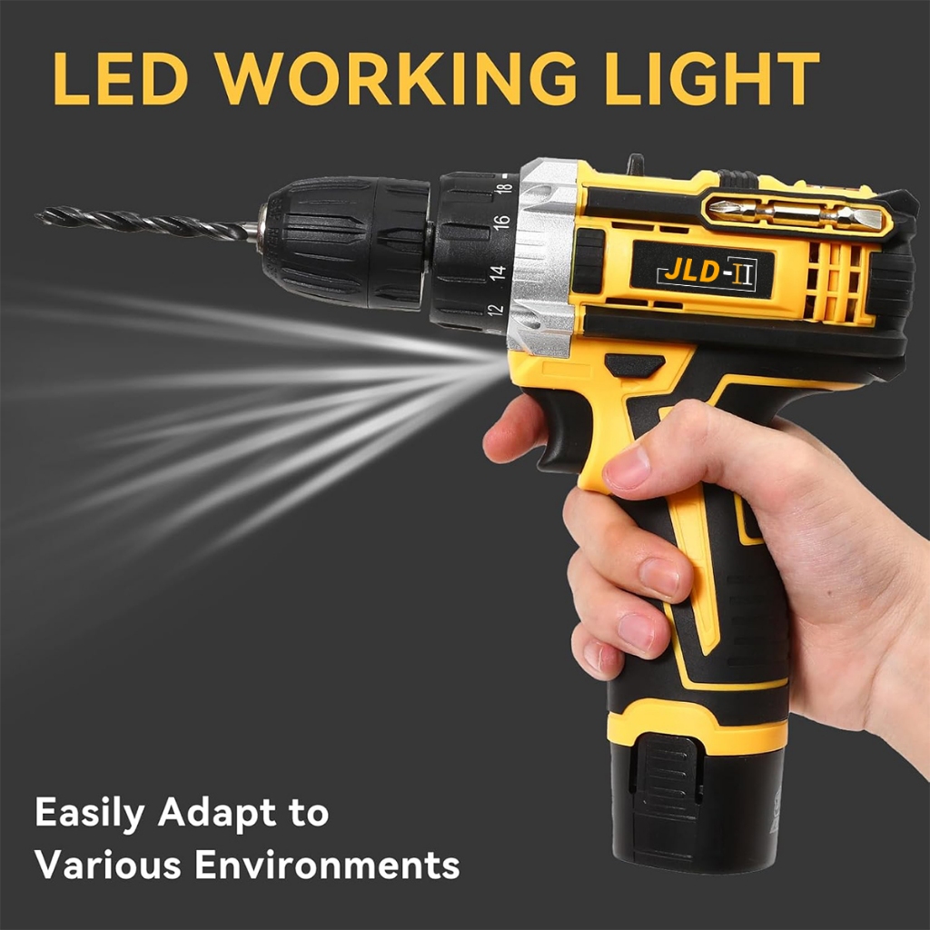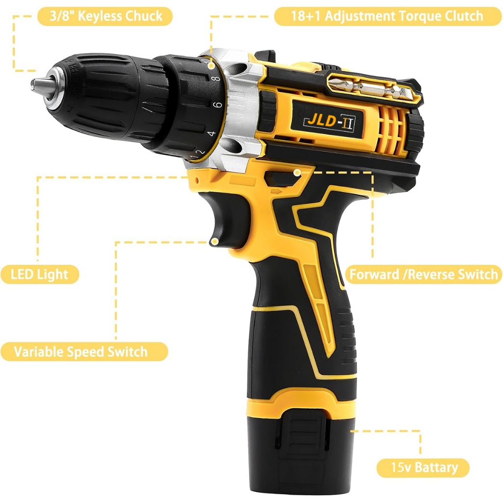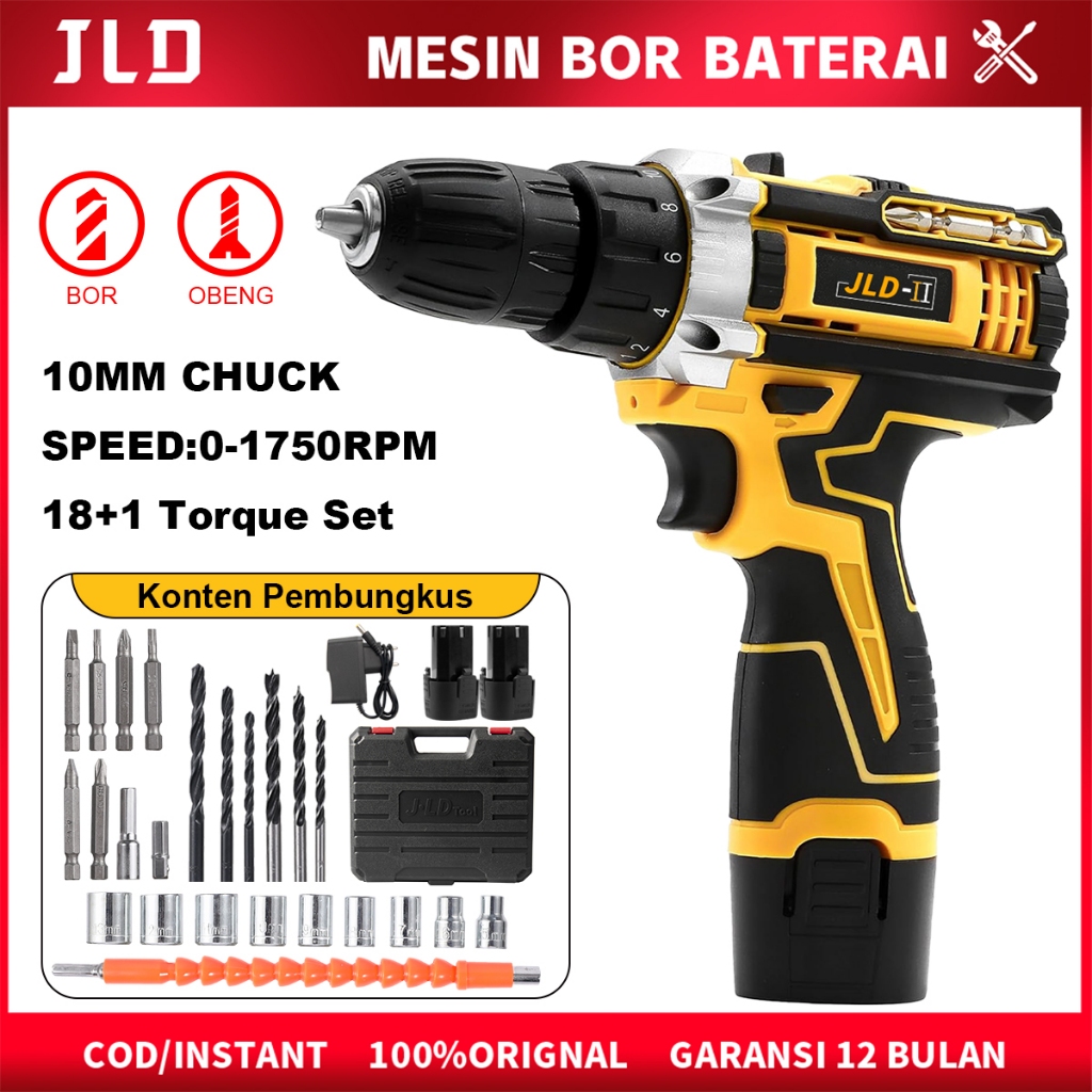 JLD-II 15VF Mesin Bor Baterai Tangan Cordless Drill 10mm Fullset Impact Drill 18+1 Bor Cas Original