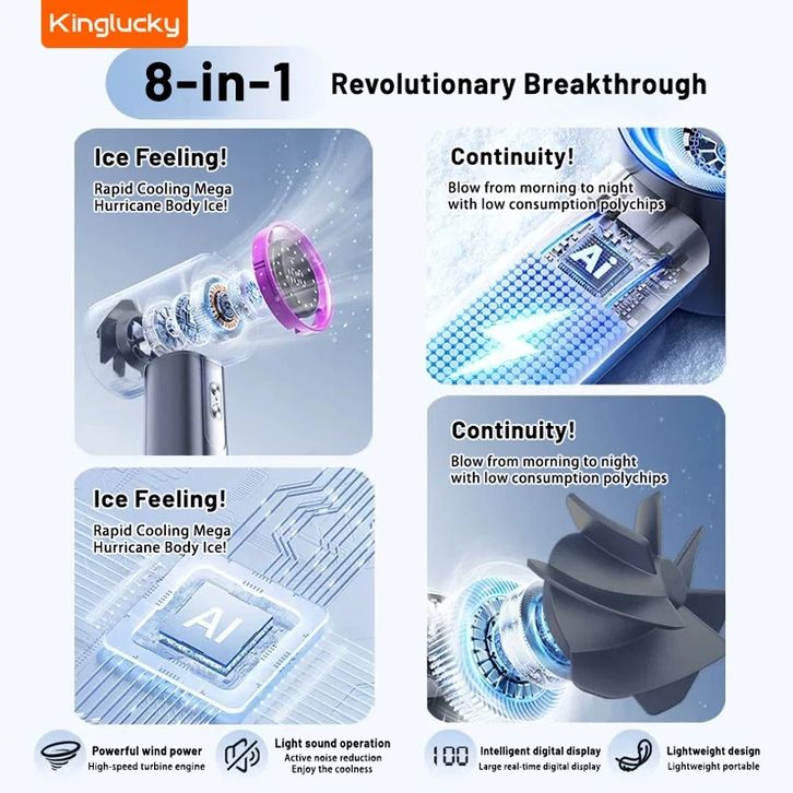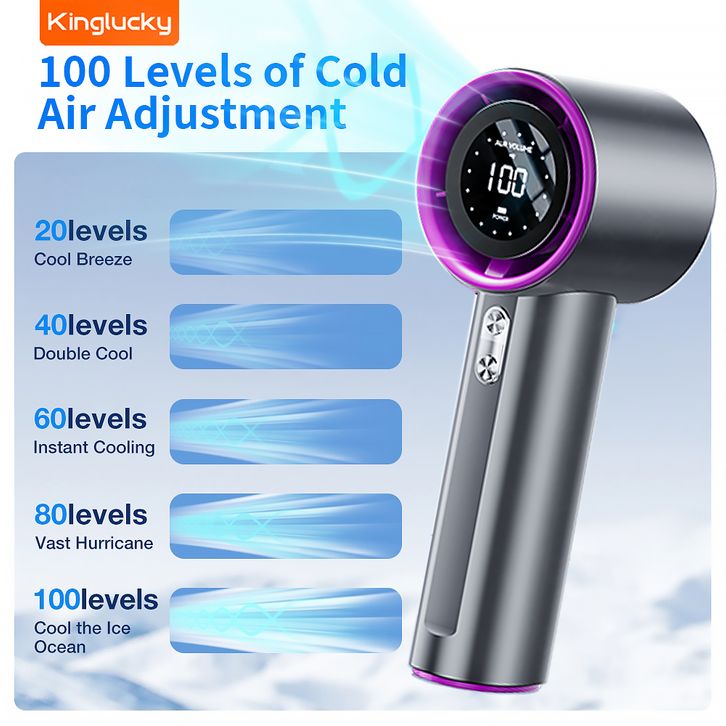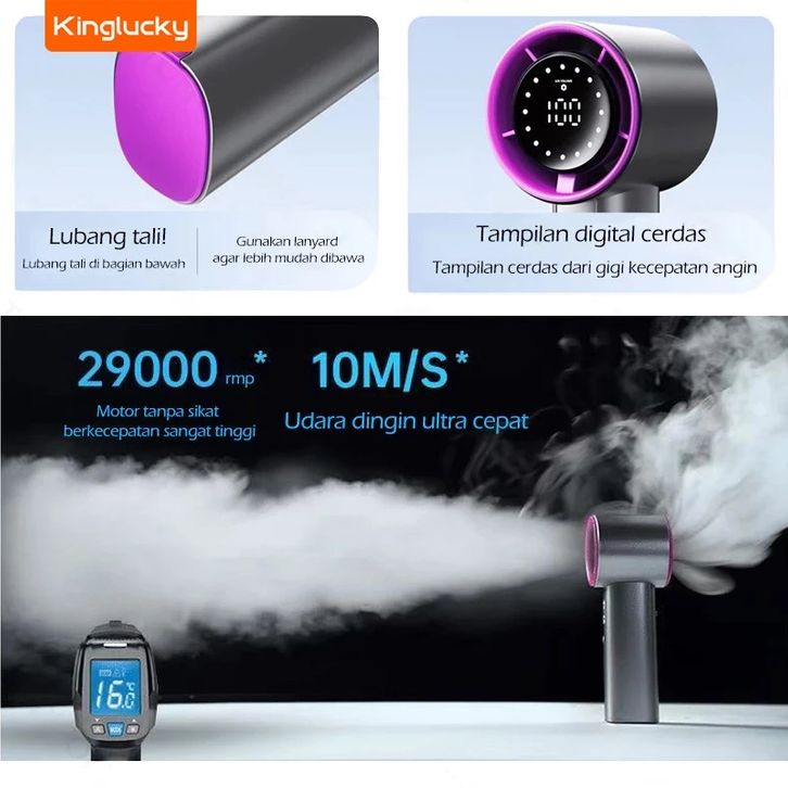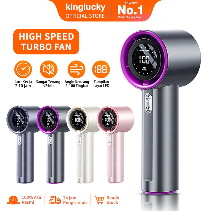 Kinglucky Kipas Mini Portable Mini Fan Genggam High Speed Strong Wind 100 Gear Digital Display Terbaru
