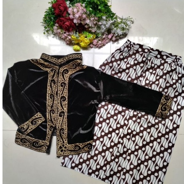 Set Beskap Cowok Bludru Stick Anak (Baju + Rok)