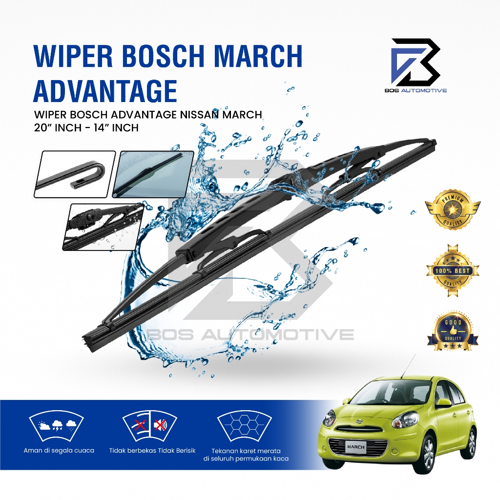 Wiper Blade BOSCH Advantage Besi Kipas Kaca Depan Mobil NISSAN MARCH Frame Hook 21" - 14" Inch Original