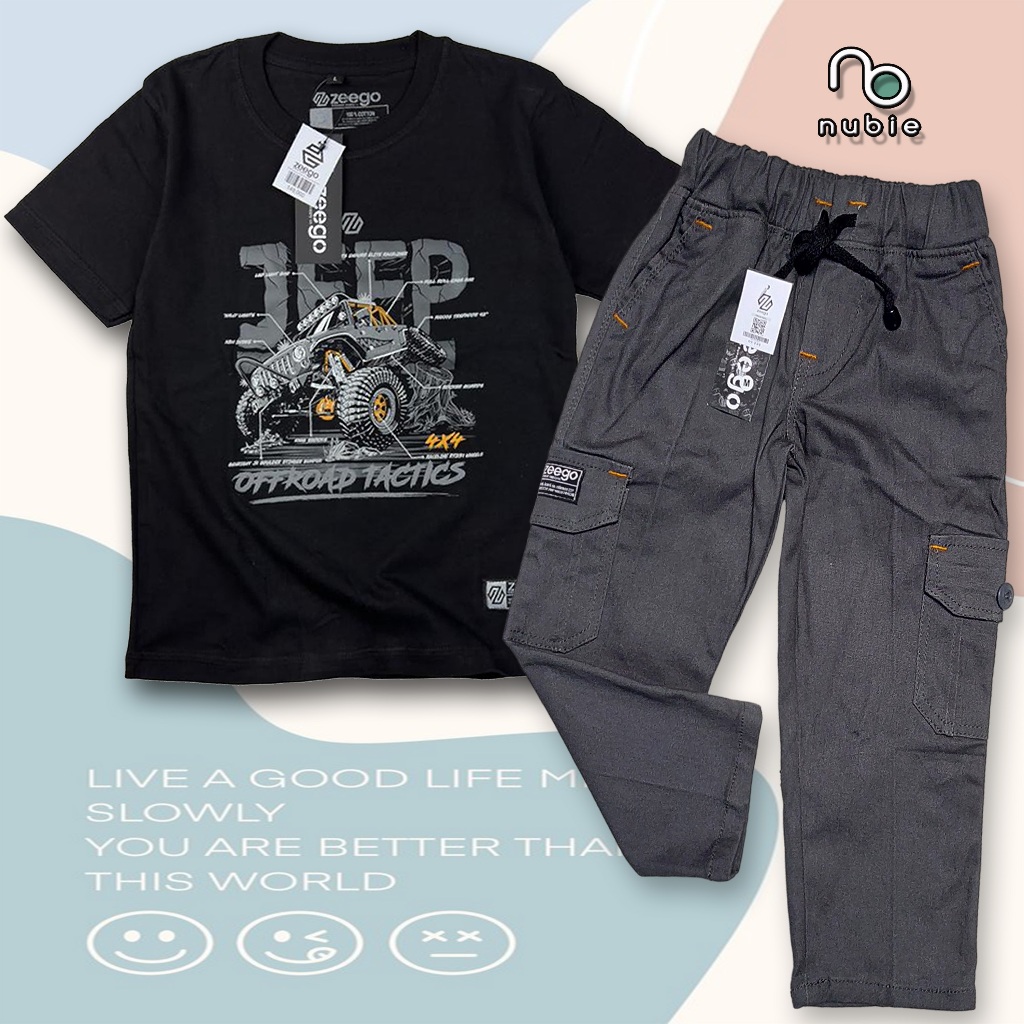 Setelan Anak Kaos Celana Kargo Panjang Usia 3-12 Tahun Motif Keren