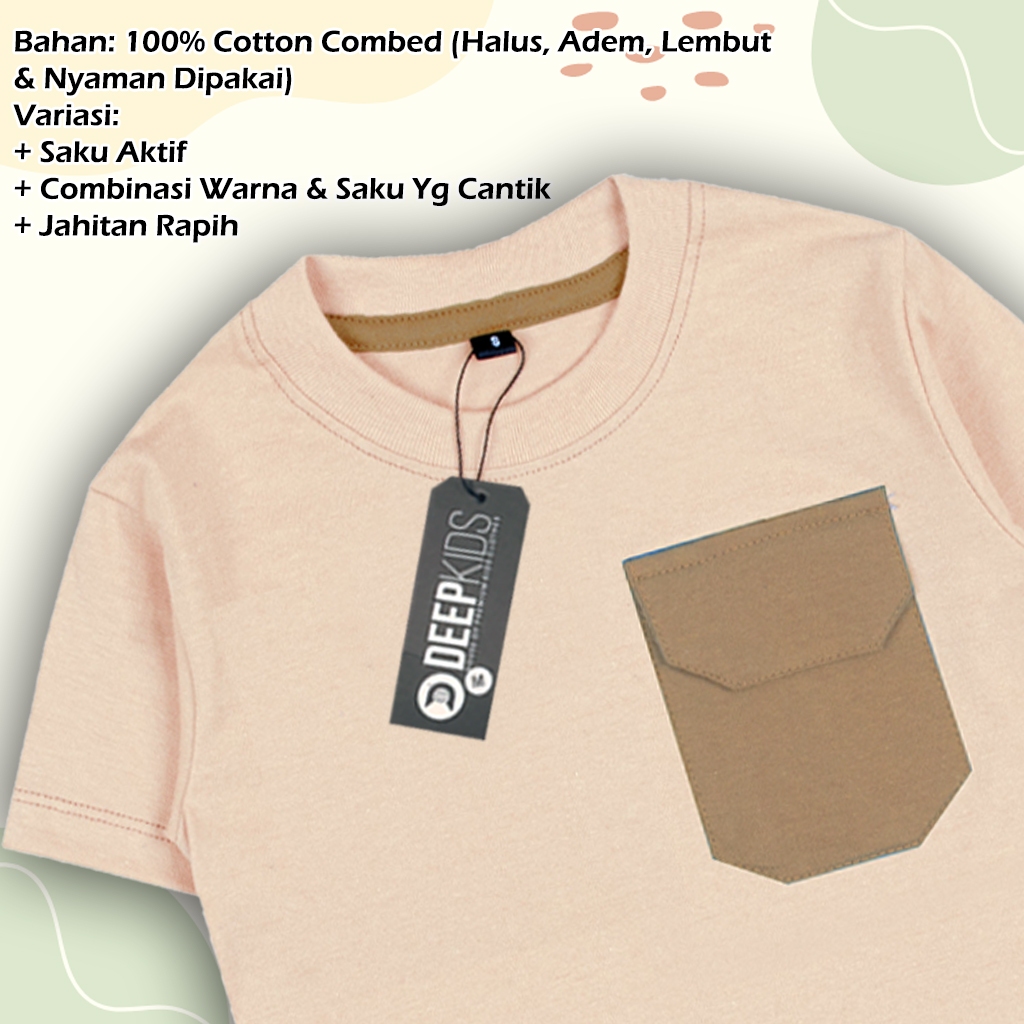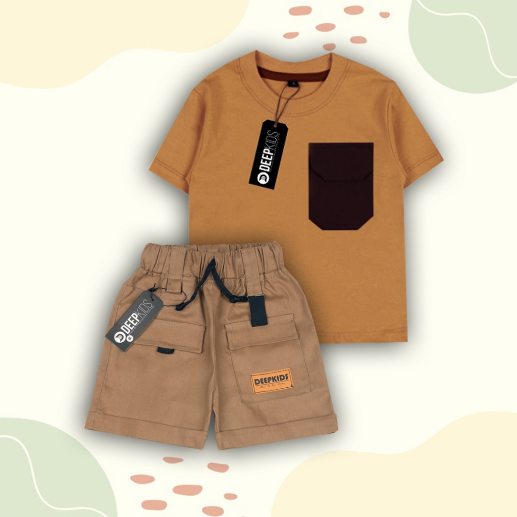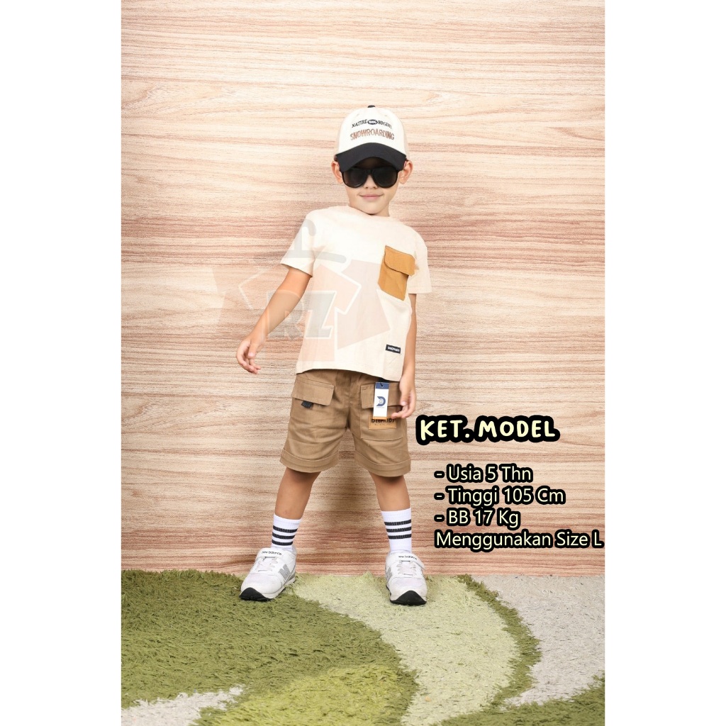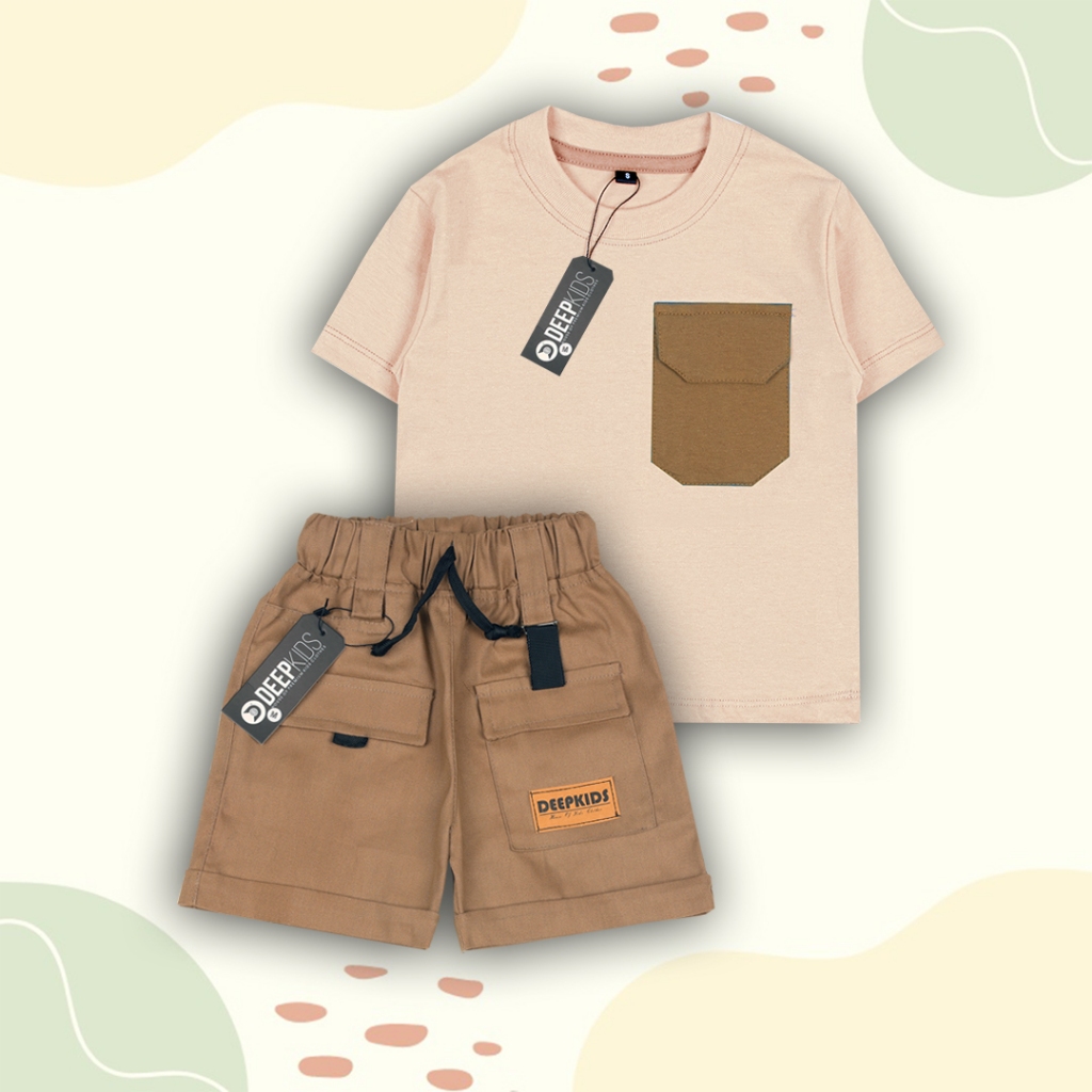 Setelan Anak Laki Laki Kaos & Celana Chinos Cargo Pdk Polos Saku Usia 1-12 Tahun Bahan Kaos Cotton 30S & Celana Cotton T