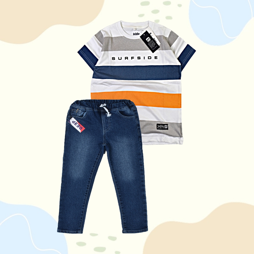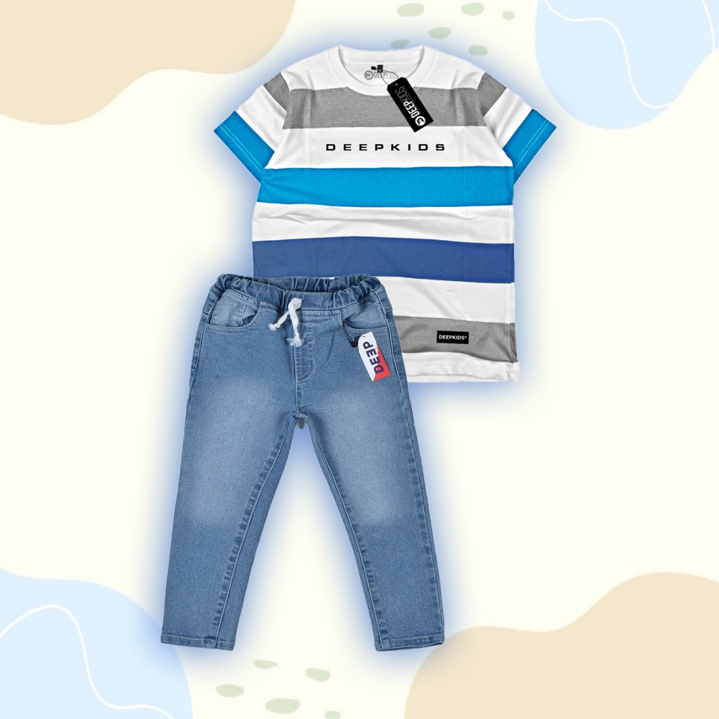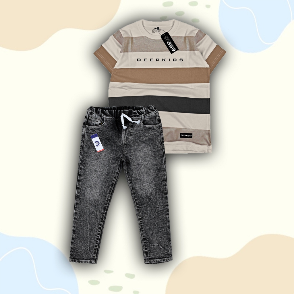 Setelan Anak Laki Laki Kaos Distro & Celana Jeans Panjang Premium Usia 1 2 3 4 5 6 7 8 9 10 11 12 Tahun Set Fullprint Je