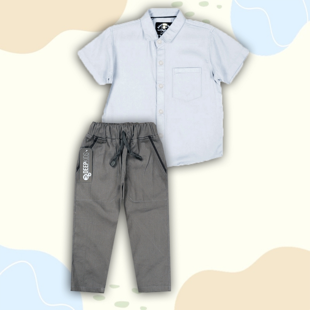 Setelan Anak Laki Laki Kemeja Pendek Celana Chinos Panjang Usia 1 2 3 4 5 6 7 8 9 10 11 12 Tahun Banyak Pilihan Motif Pr