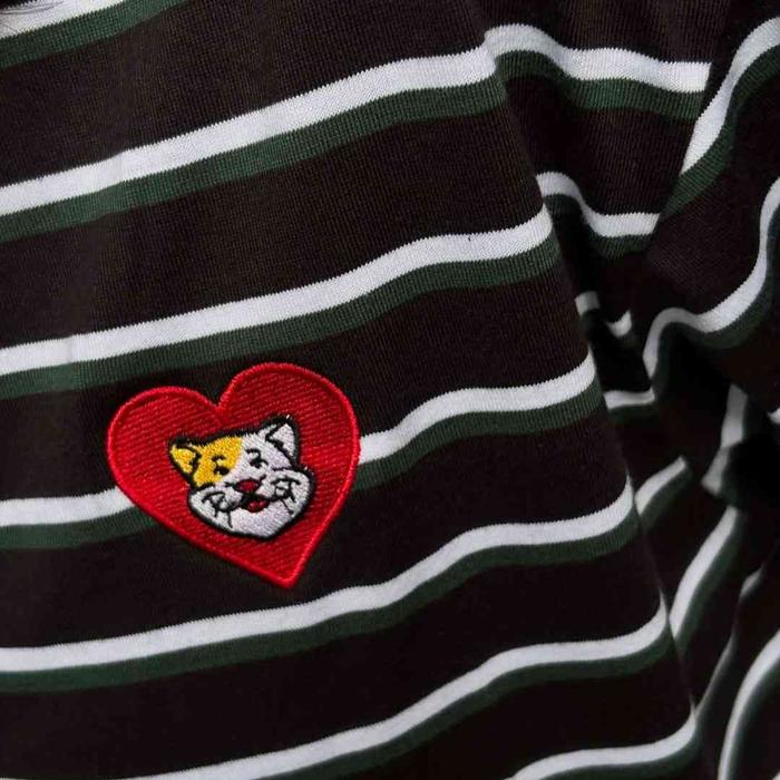 KICKCHICK LONGSLEEVE POLO STRIPE LOGO CAT LOVE EMBROIDERY GREEN BOTTLE | KAOS ATASAN BORDIR | POLO LENGAN PANJANG STRIPE | KC-LS-PS-STRIP-CLE - GREEN BLACK, S