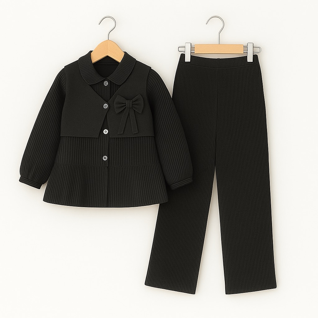 Setelan Anak Perempuan Terbaru 2025 Lengan Panjang Usia 4-15 Tahun Bahan Knit Mix Salur Terbaru Kekinian Fashion