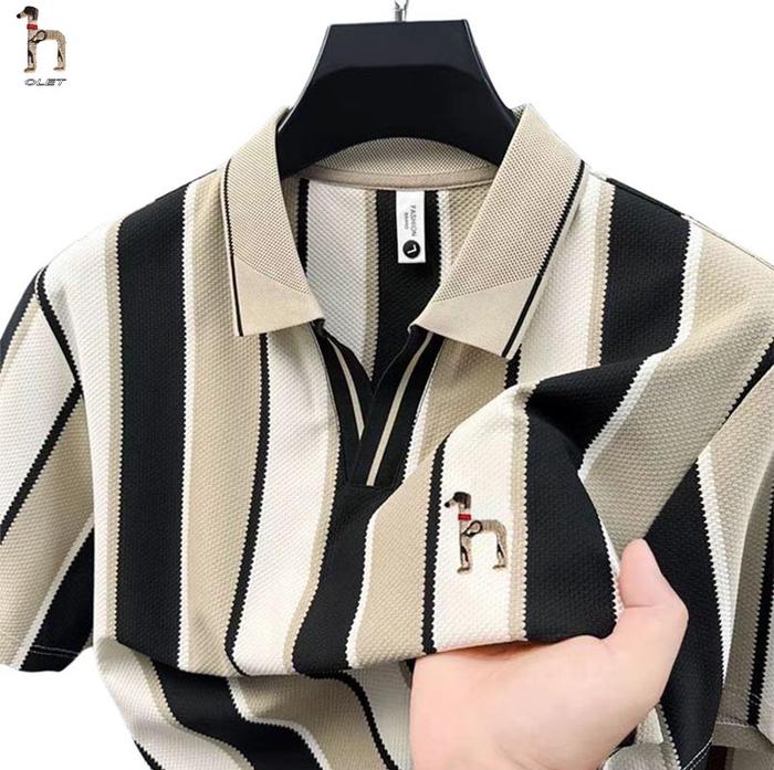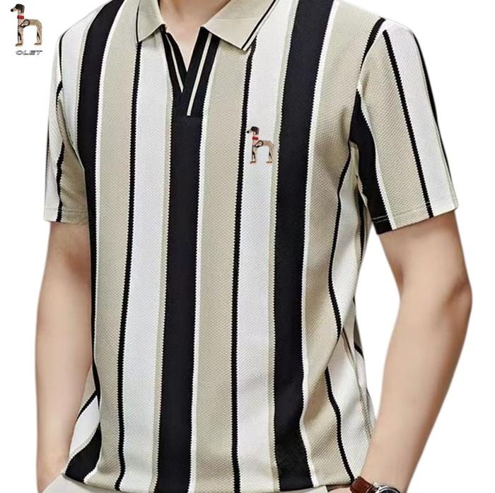 OLET POLO SHIRT PRIA ORIGINAL KAOS POLO GARIS BAJU KAOS PRIA BORDIR KEMEJA POLO BERGARIS VERTIKAL KAOS PRIA KEREN - HITAM, M