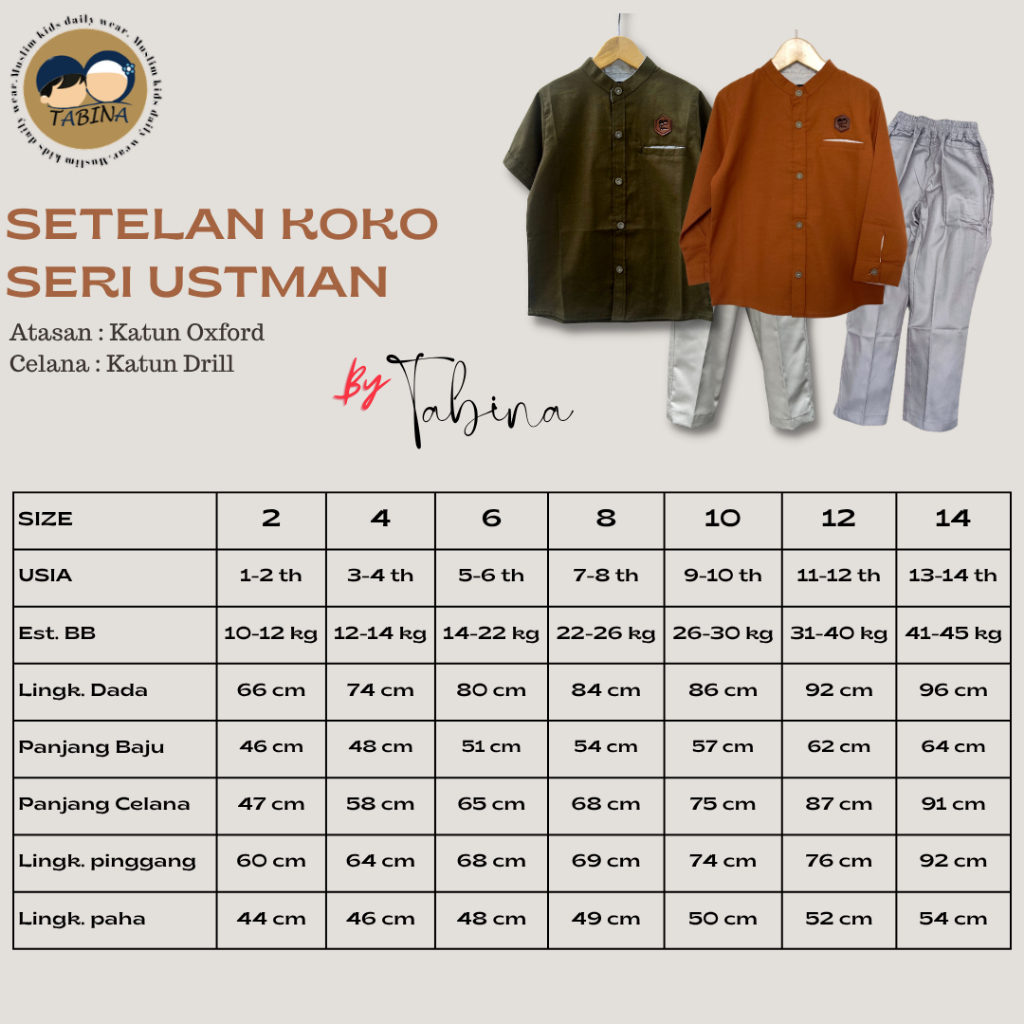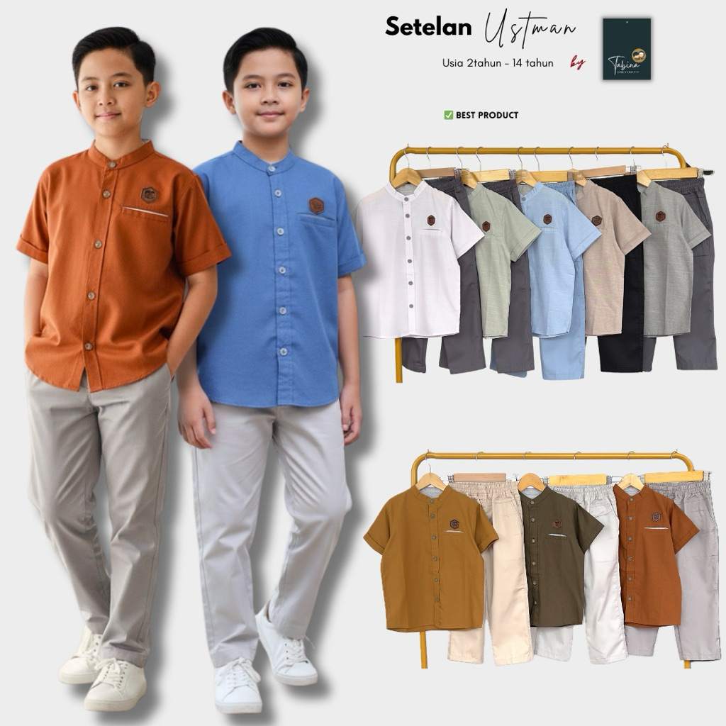 Setelan Kemeja Lengan Pendek Tabina Seri Ustman Anak Laki Laki Usia 1 - 16 Tahun Remaja