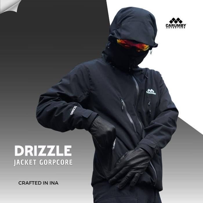 JAKET GUNUNG CARUMBY DRIZZLE POLOS HITAM PRIA WANITA - HITAM BORDIR MICRO, L