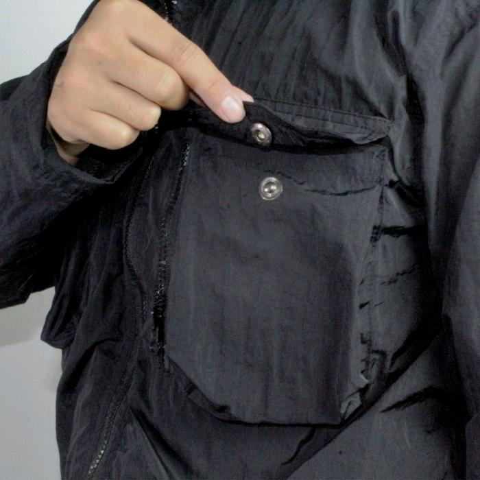 OZEYSX JAKET OVERSHIRT CASUAL BLACK BASIC CRINGKLE OVERSHIRT JACKET CASUAL PRIA WANITA - HITAM, M