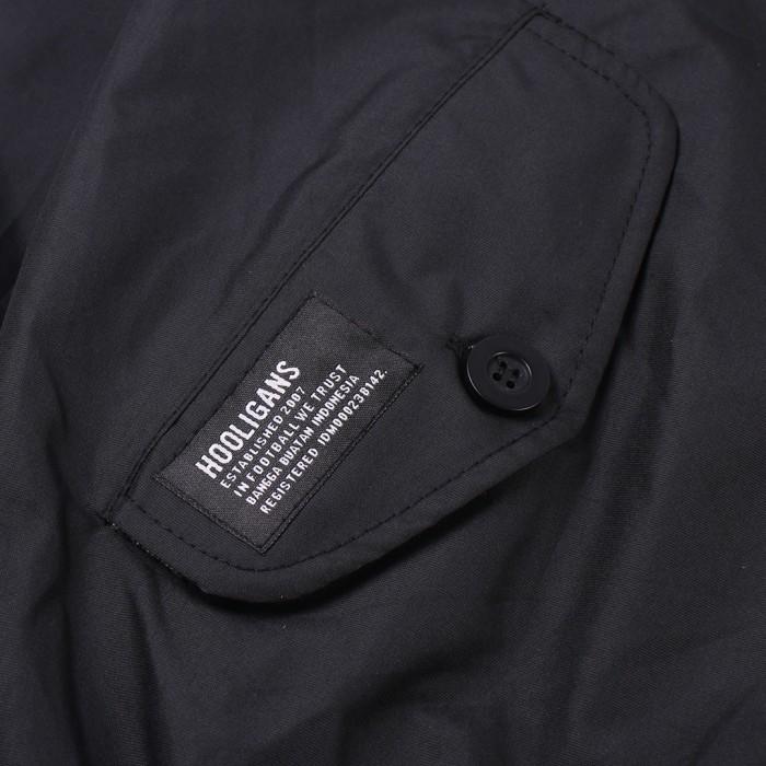 HOOLIGANS HARRINGTON JACKET HARRY PJ - BLACK JAKET HITAM CASUAL PRIA ZIPPER POLYESTER LOGO - S