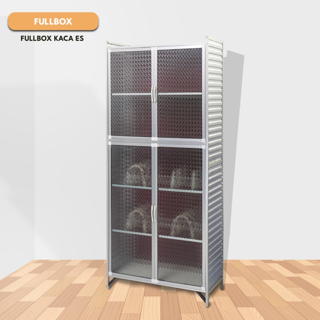 Lemari Kaca Dapur Lemari Rak Piring & Makanan Aluminium 2 Susun 4 Pintu Kaca Riben Kaca Es 162cm