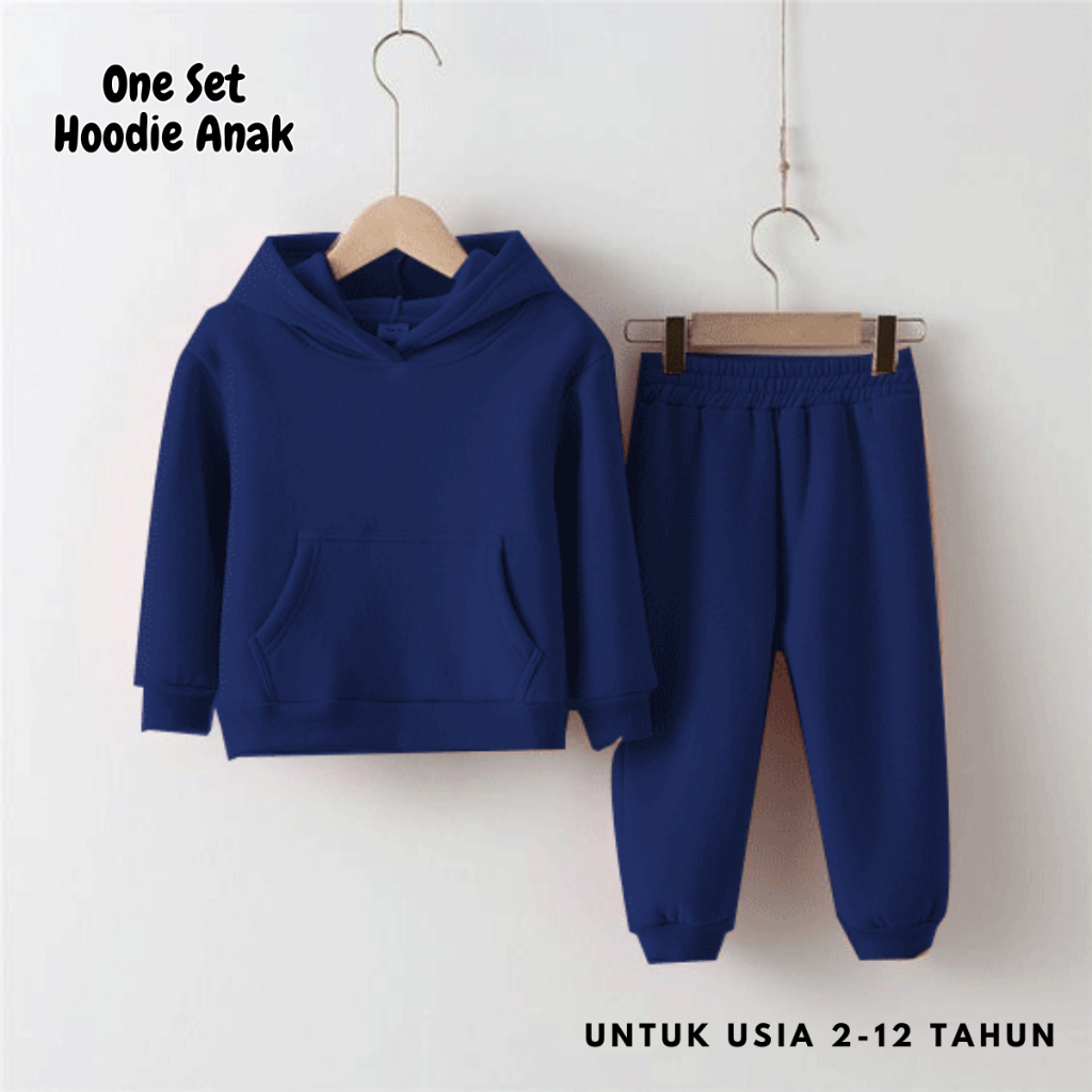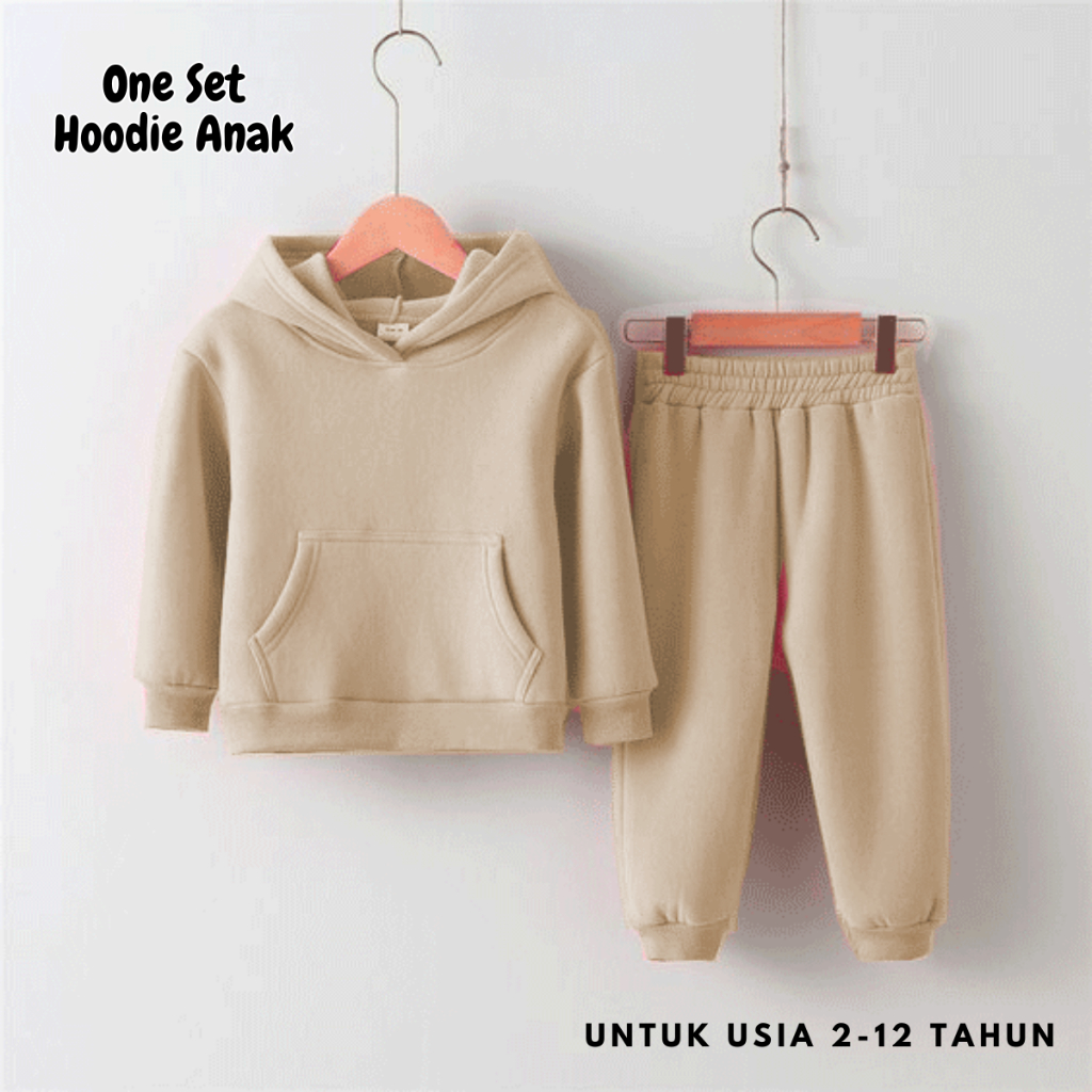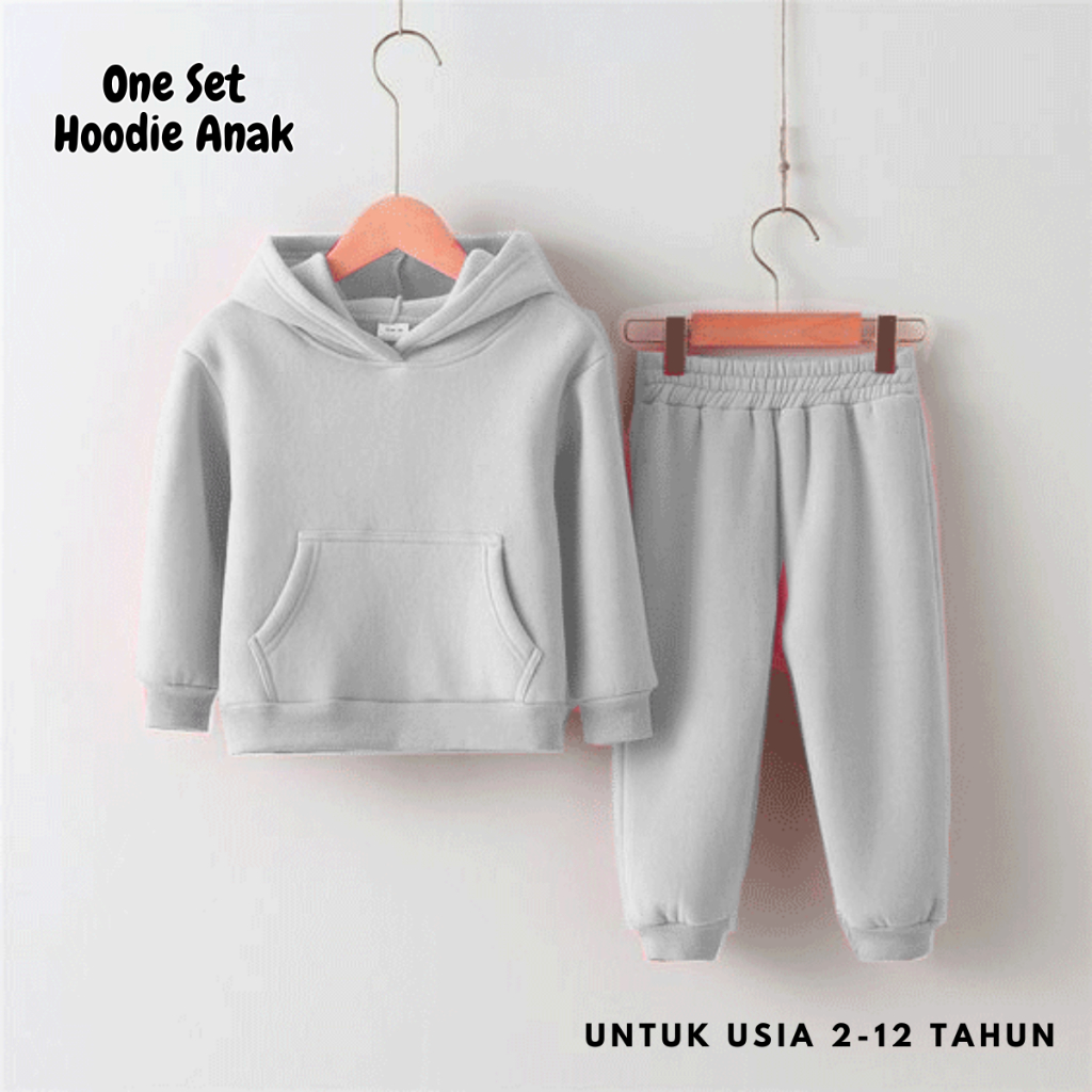 Setelan Hoodie Polos Anak Laki-Laki / Perempuan Usia 2 3 4 5 6 7 8 9 10 11 12 Tahun