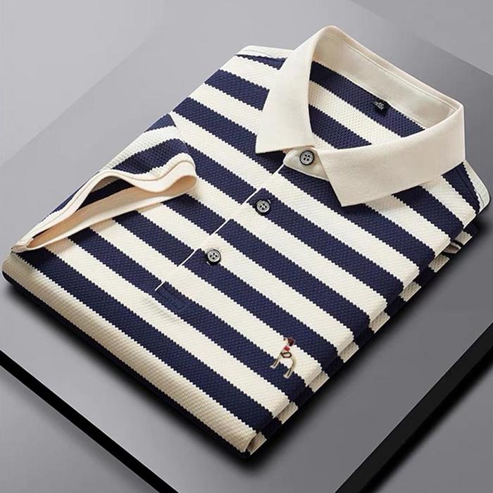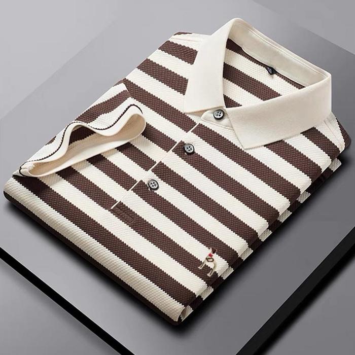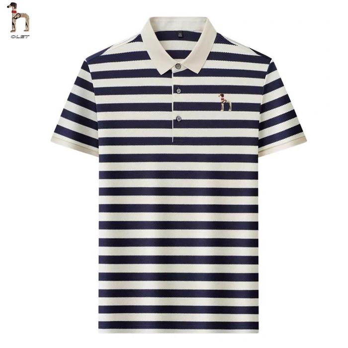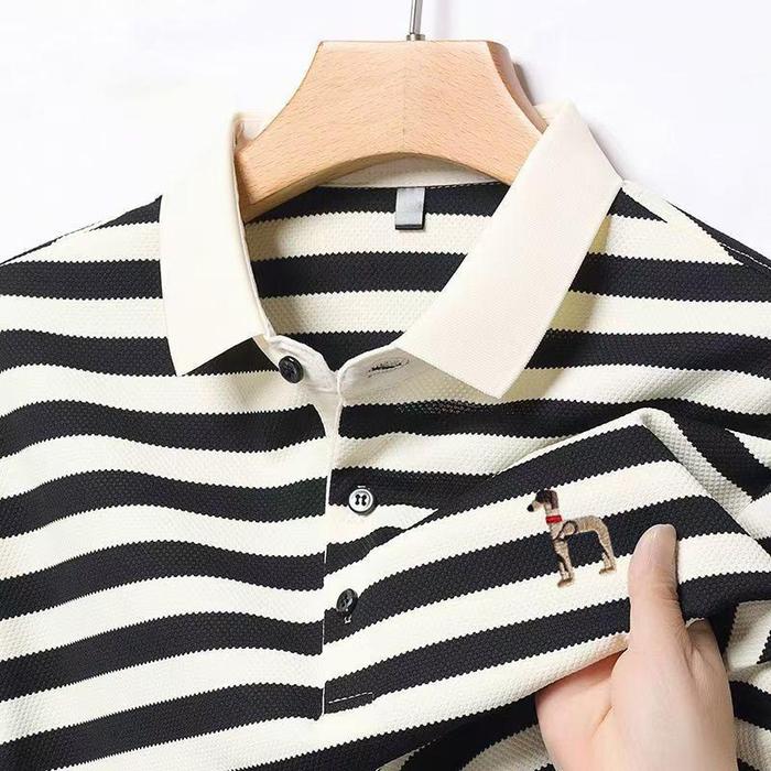 OLET POLO SHIRT PRIA KEMEJA PRIA GARIS-GARIS POLA HITAM PUTIH KAOS KERAH PRIA BORDIR TANGAN - HITAM, M