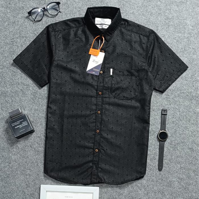 DETAK ORIGINAL KEMEJA EMBOS SULTAN LENGAN PENDEK PRIA HITAM ETNIK CASUAL SLIM-FIT - HITAM ETNIK, M | MEDIUM