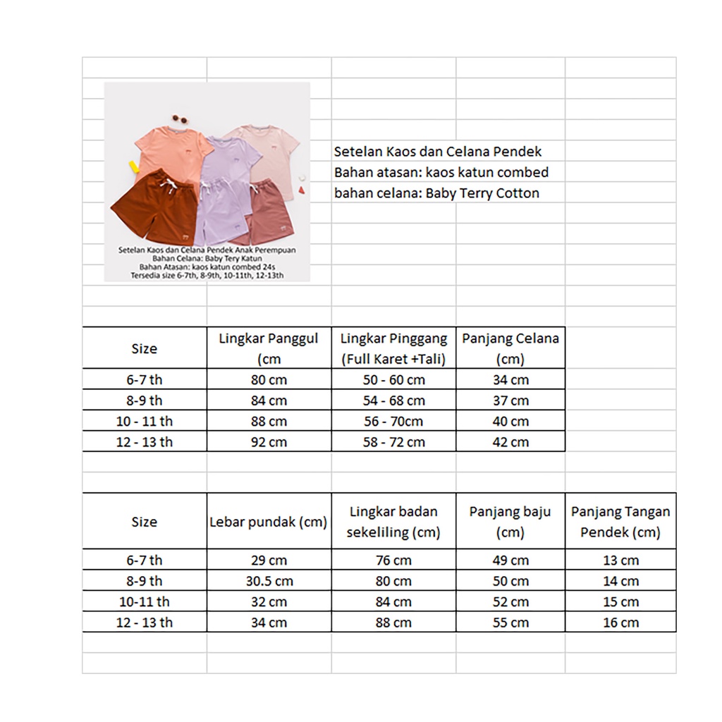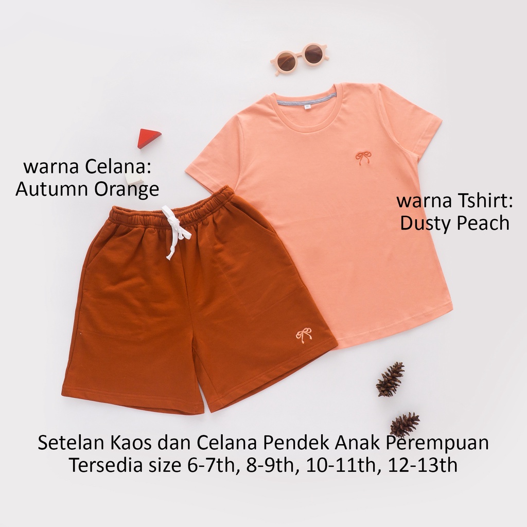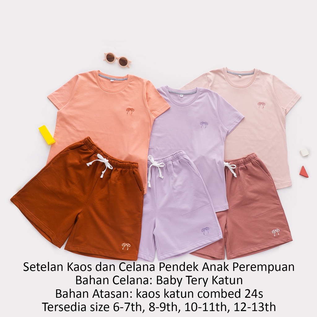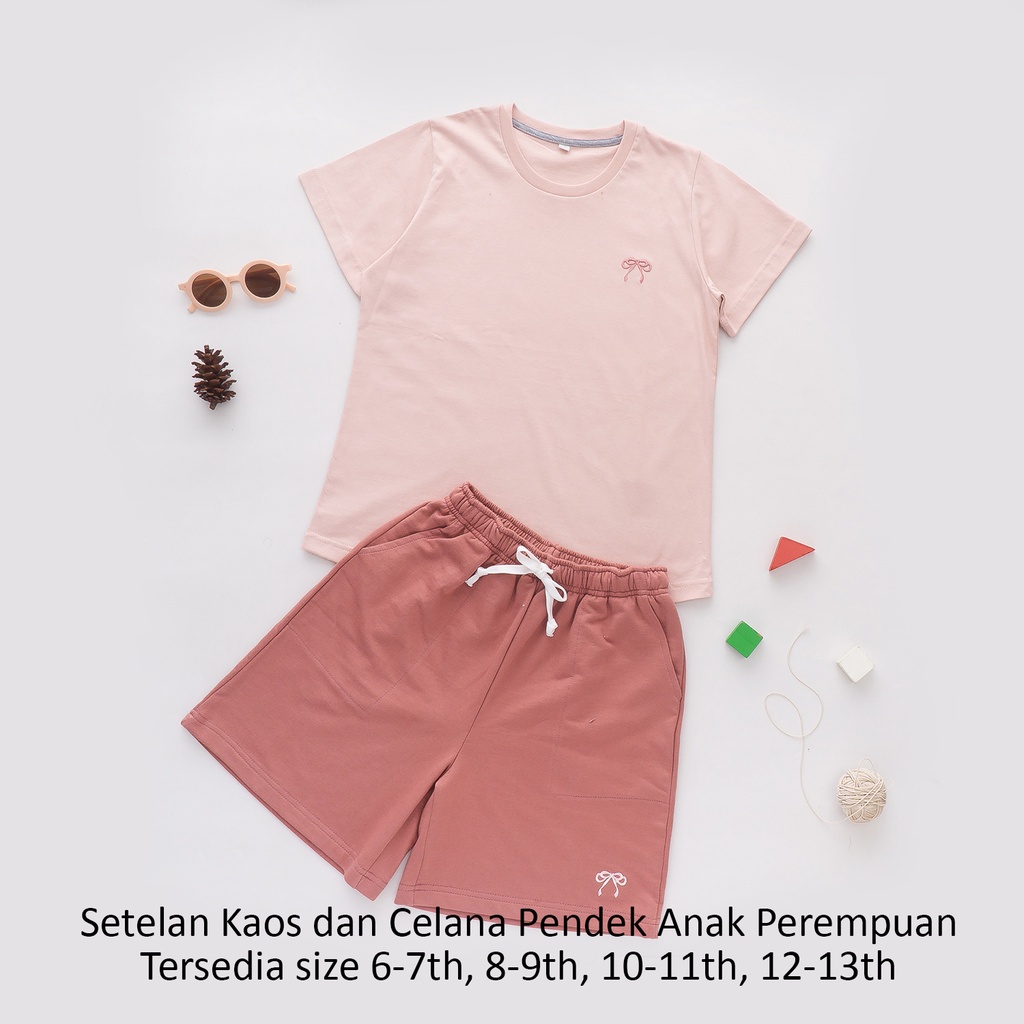 Setelan Oneset Kaos Basic Tee Dan Celana Pendek Anak Perempuan Katun Harian 6 8 10 12 Tahun