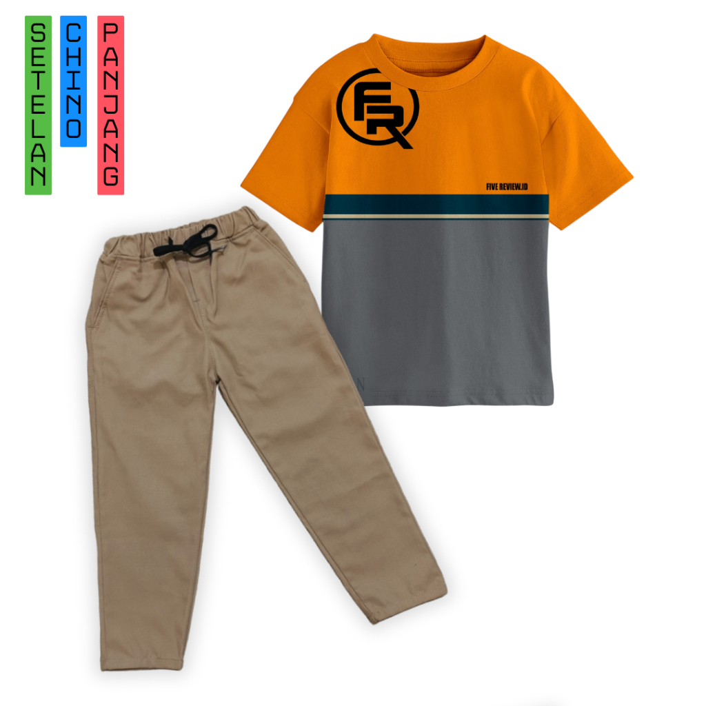 Setelan/Stelan Kaos Motif Terbaru Celana Chino Panjang Bahan Katun Streath Anak Cowok Laki-Laki Perempuan Usia 3-12Thn