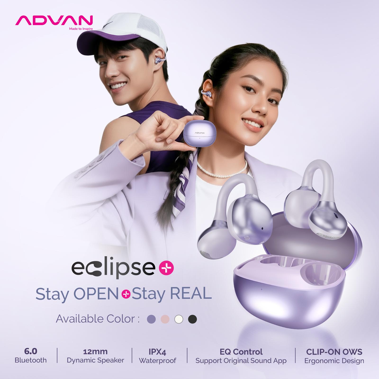 ADVAN Eclipse+ Plus Open-Ear Clip Bluetooth 6.0 Low Latency Smart Touch Control Up To 9 Hours Apps Support IPX4