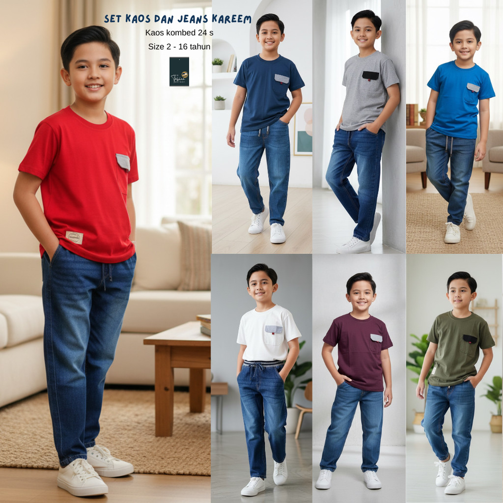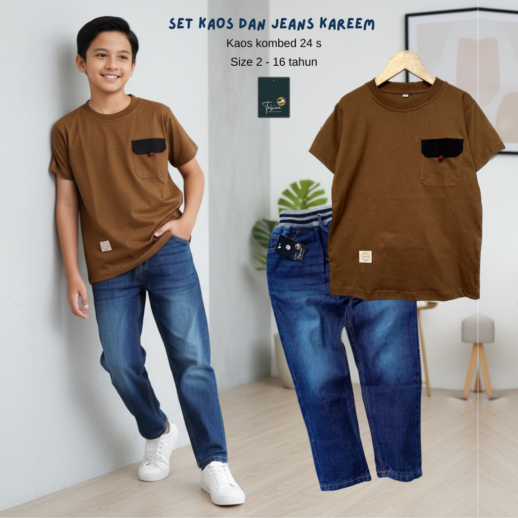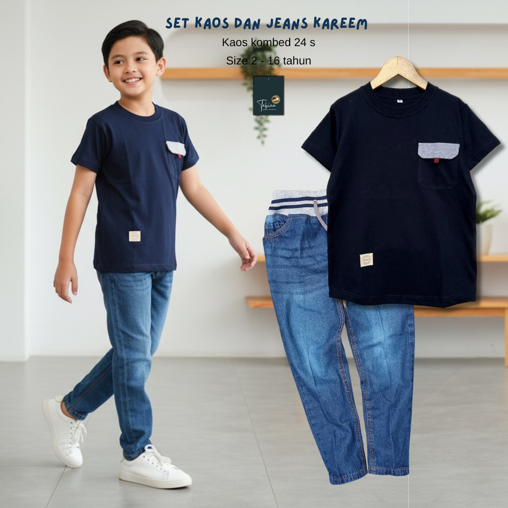 Tabina Setelan Kaos Anak Laki Laki Remaja Lengan Pendek Seri Kareem Whisker Usia 2 Sampai 16 Tahun