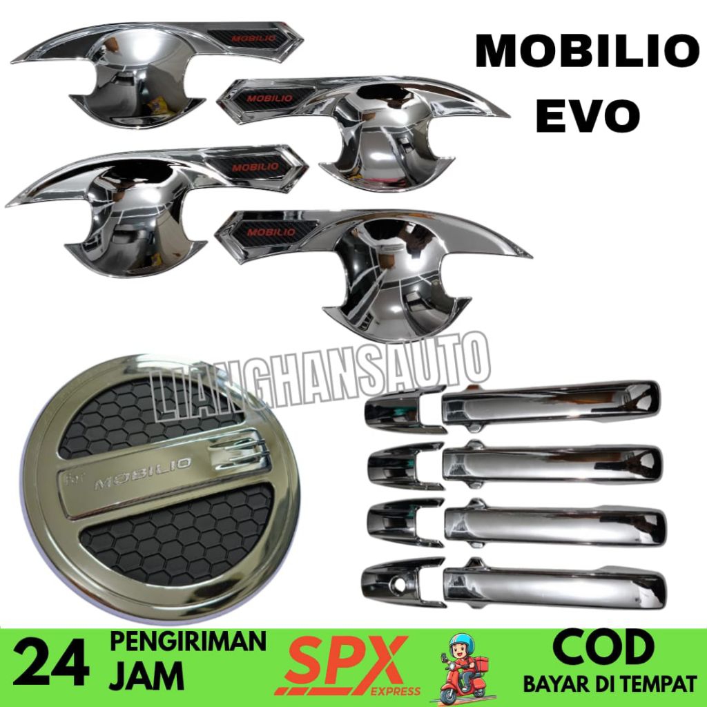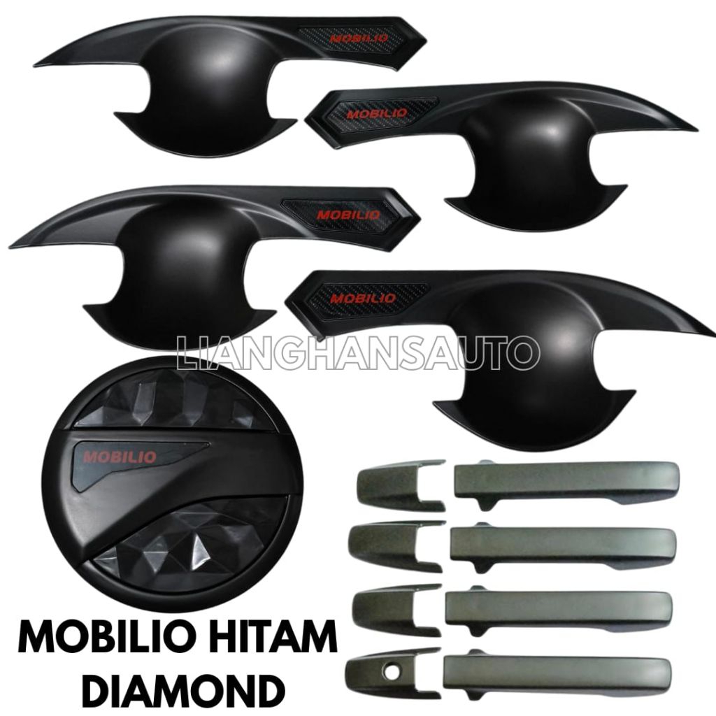 PAKET LENGKAP HANDLE OUTER TANK COVER MOBIL MOBILIO PREMIUM CARBON HITAM CHROME