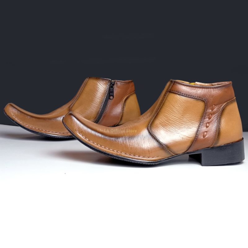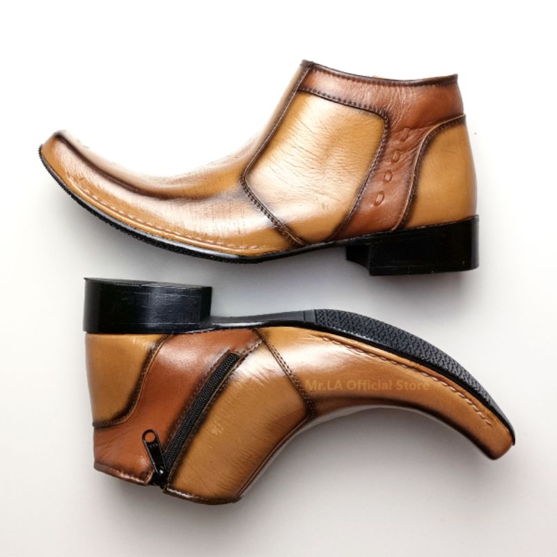 Mr. LA Sepatu Pantofel Formal Pria Kulit Asli Model Resleting Samping Warna Hitam Tan Size 38-45