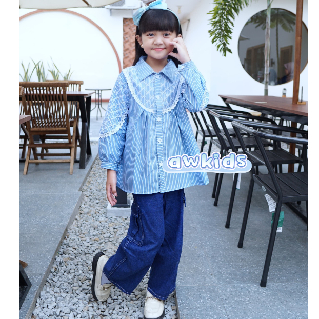 Stelan Anak Perempuan Terbaru Usia 3-12 Tahun, Baju Dan Celana Fashion Jeans Set