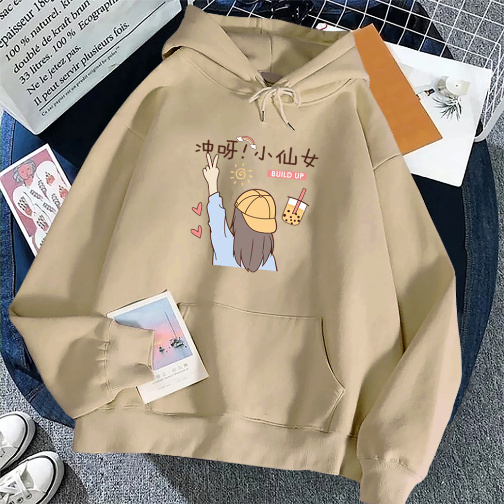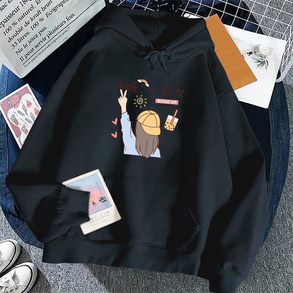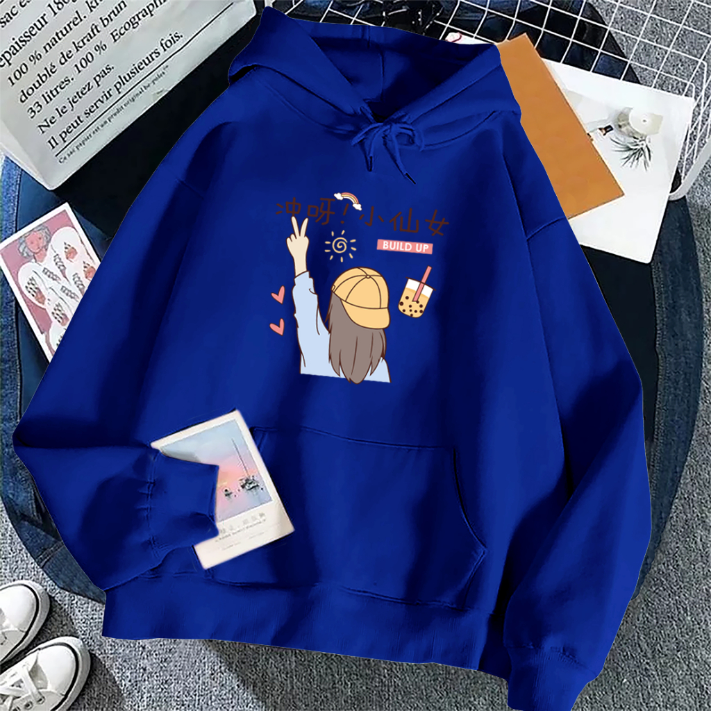 Sweater Hoodie Anak Perempuan Buildup Lengan Panjang Umur 5-15 Tahun Bahan Flecee
