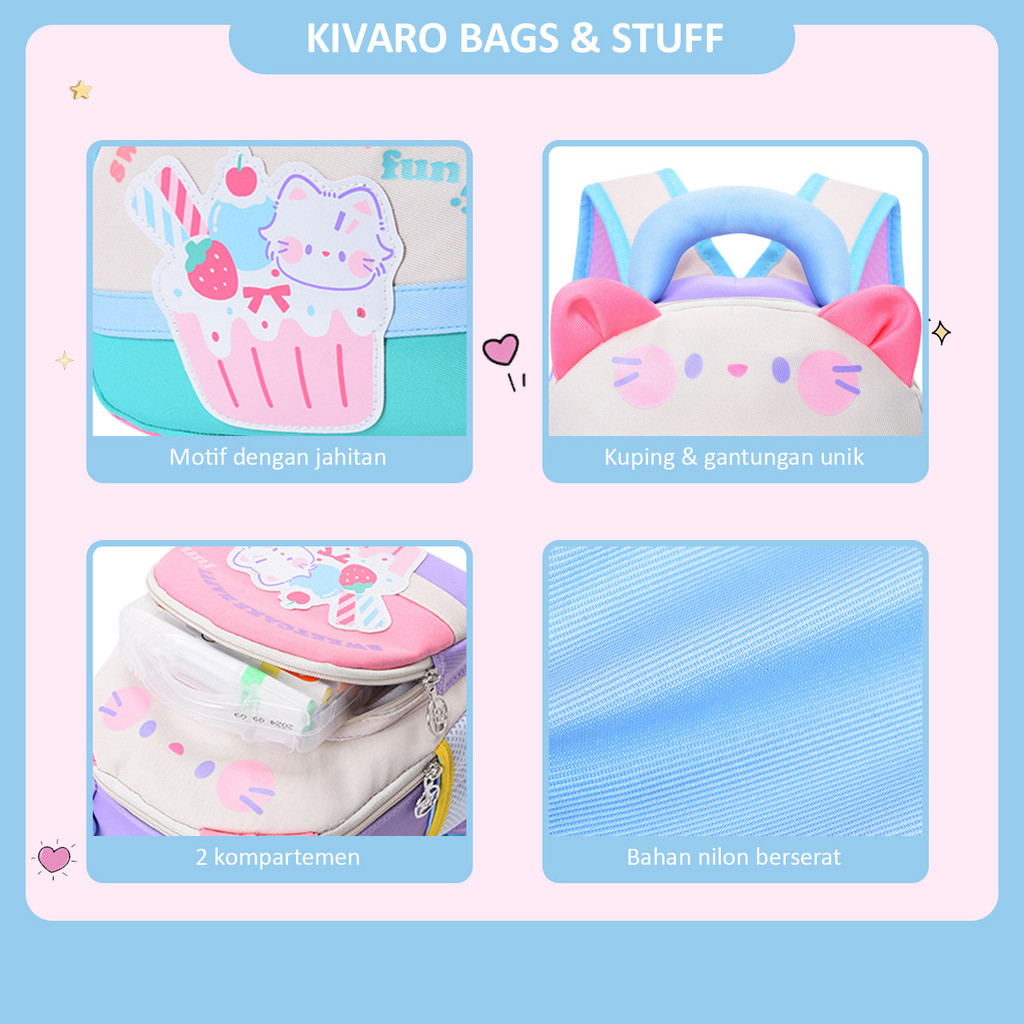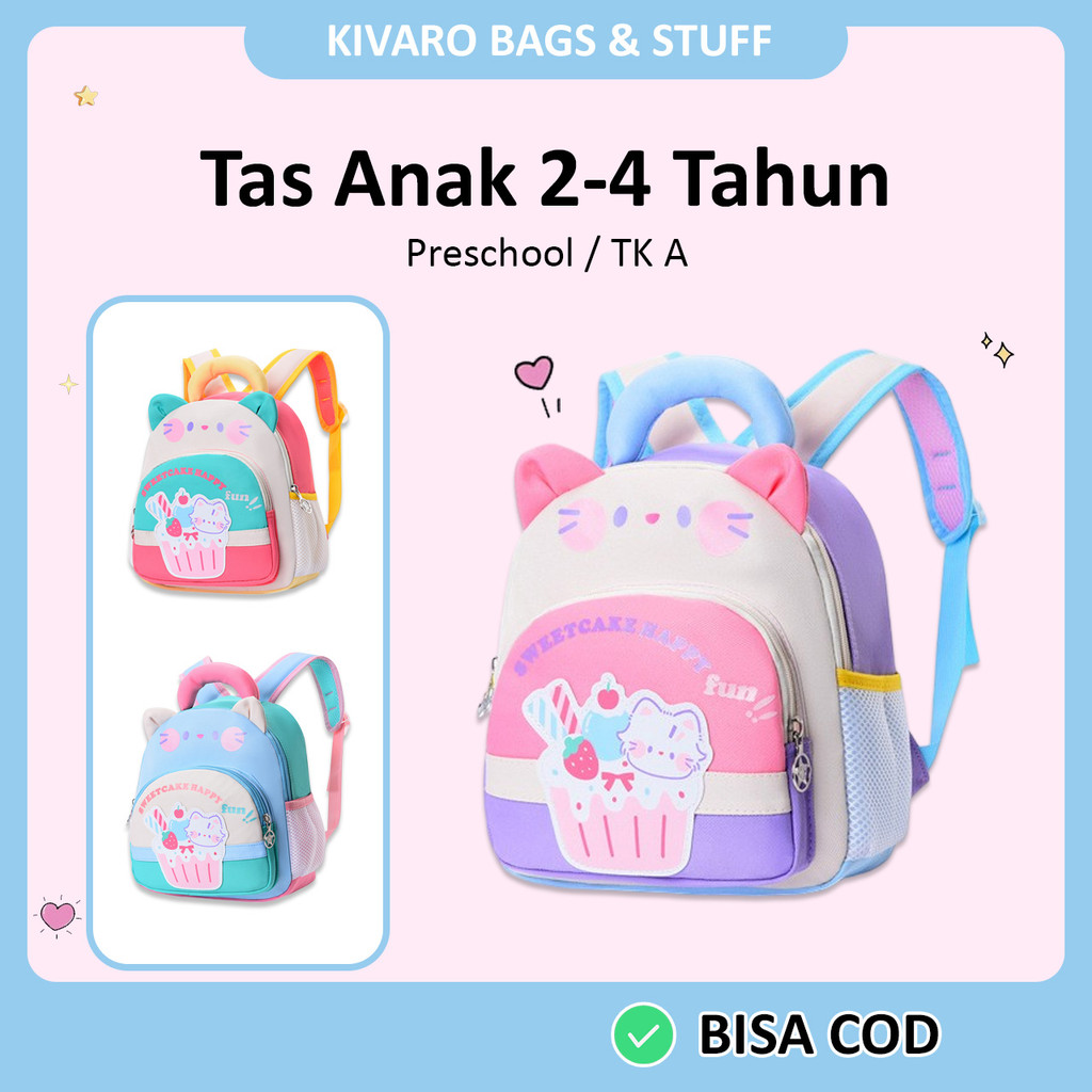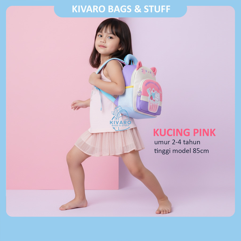Tas Kucing Anak Tk Perempuan Warna Cerah Umur 2-4 Tahun Ukuran 28Cm Paud | 626 Kivaro