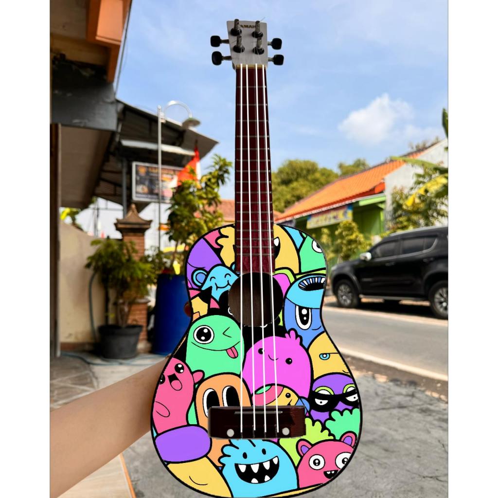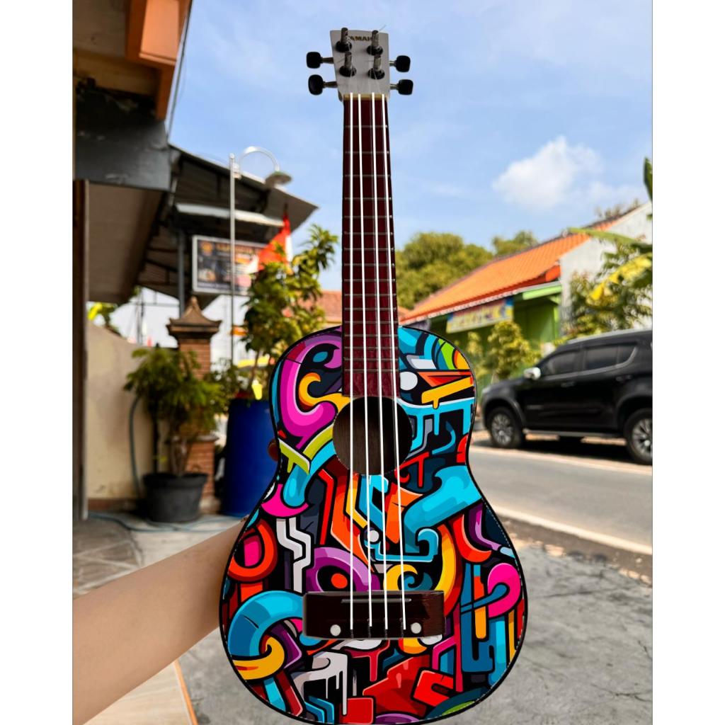 ukulele senar 4 murah motif dan warna bonus pick (Gratis Packing Kayu) paket lengkap