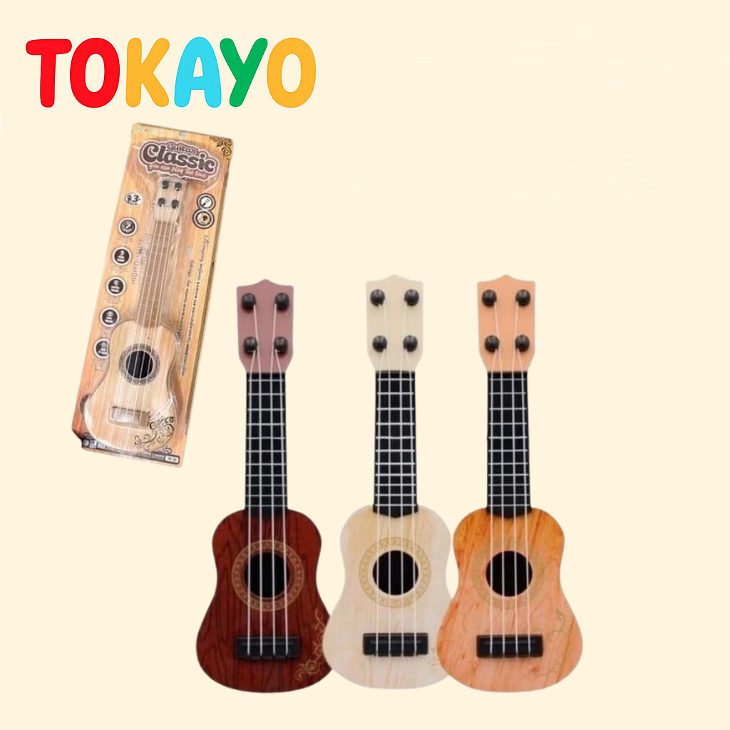Tokayo Ukulele Mini Gitar Klasik Anak 4 Senar Mainan Edukasi Musik Motif Kayu Mini Guitar Kids Toy Belajar Alat Musik