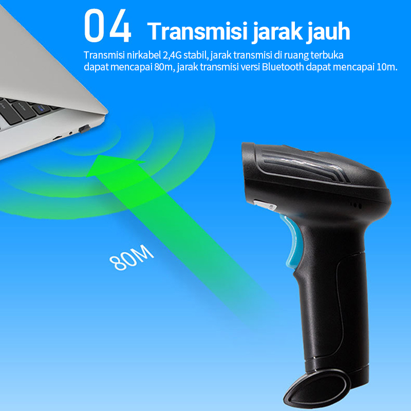 Epic Finds 2D Barcode Scanner Laser 2.4G USB Wireless atau WIRELESS BARCODE SCANNER + Bluetooth, koneksi 80m, baterai 2000mAh