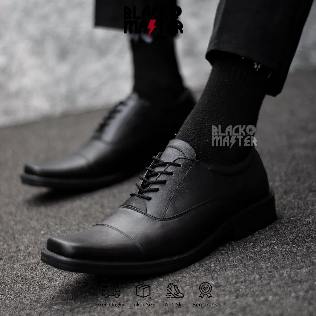 BLACKMASTER - Sepatu Formal Pantofel Tali Hitam Kulit Asli Pria Kerja