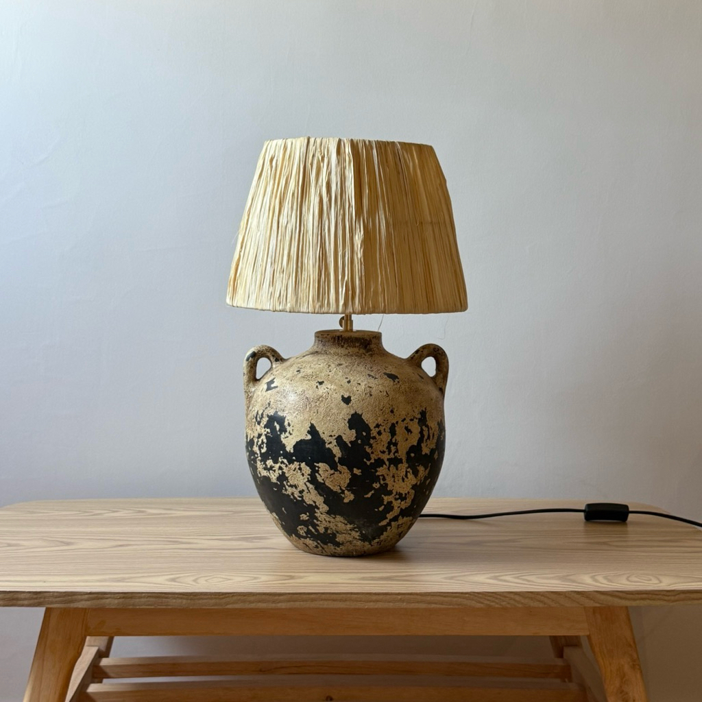Claythings.id Torso Lampu Meja Rustic - Set Lamp Handmade Vase - Vas Bunga Aesthetic - Table Lamp