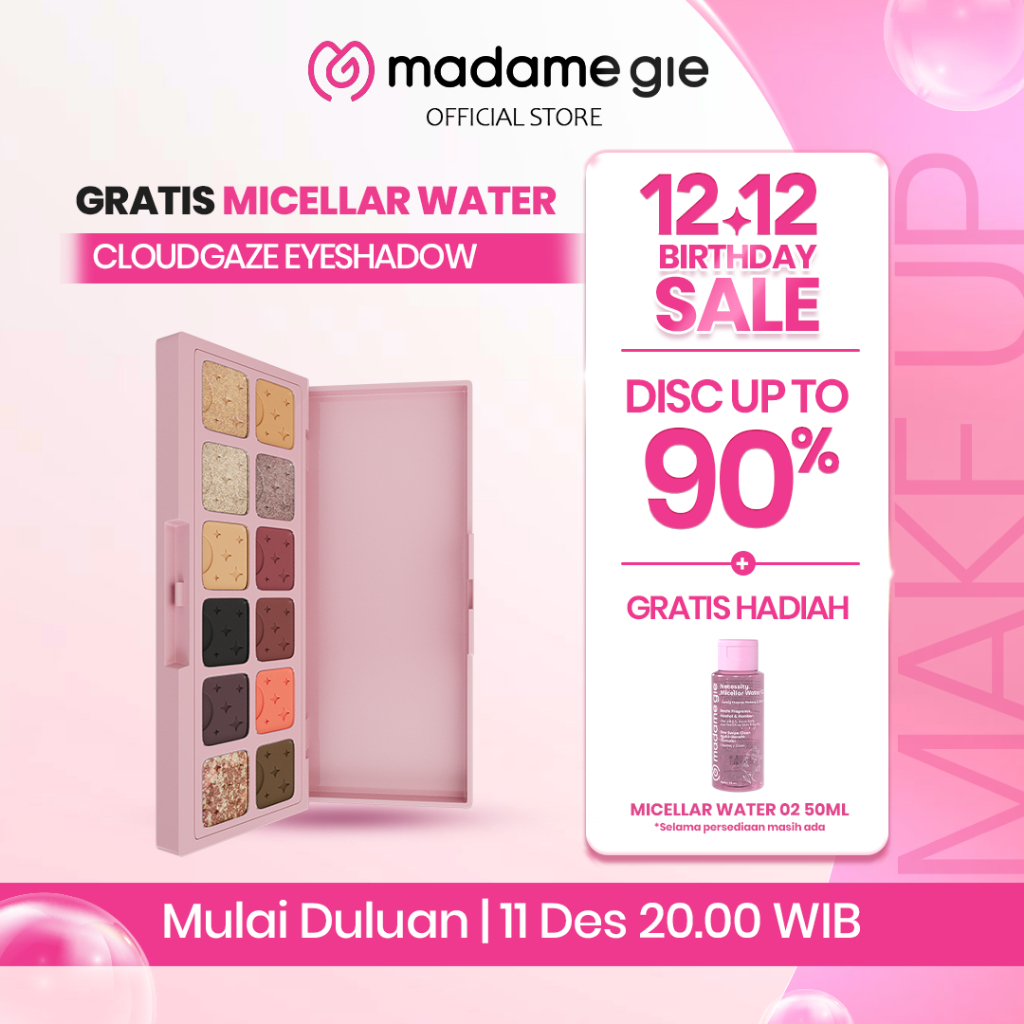 [GRATIS MICELLAR WATER] MADAME GIE Cloud Gaze Eyeshadow - Make Up Eyeshadow Palette Velvety soft