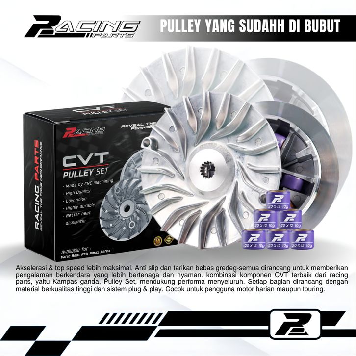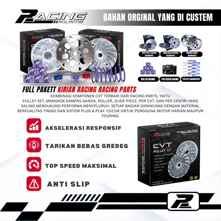 Paket Kirian Cvt Vario 125-150 Nmax Aerox Pcx Komplit Upgrade Full Komplit Puley Bubut Costum Racing