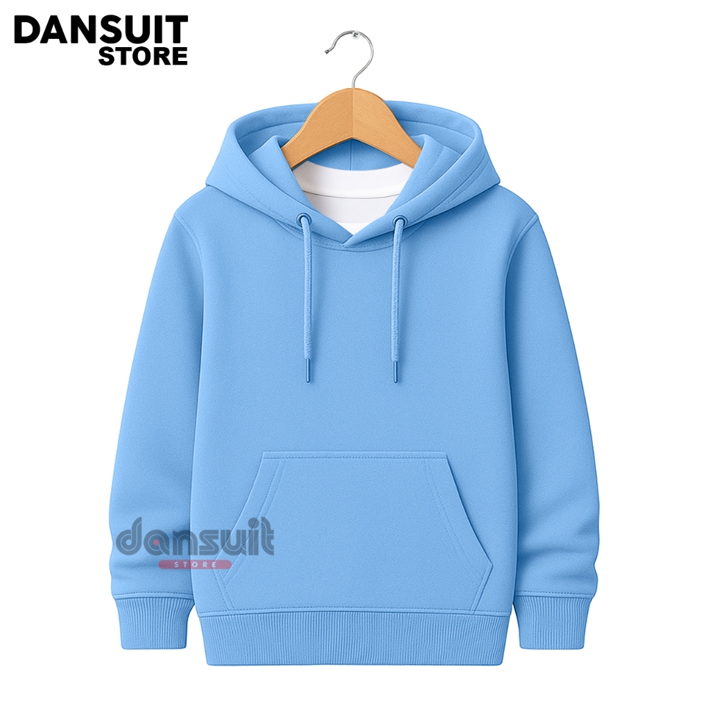 Sweater Hoodie Polos Anak Laki-Laki/Perempuan Umur 4-14 Tahun Bahan Fleece Tebal Premium