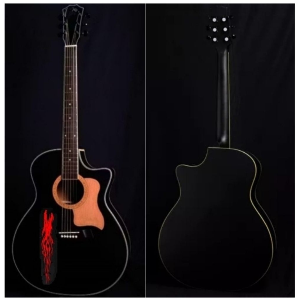 GITAR LION FIRE PREMIUM AKUSTIK TANAM BESI DOUBLE ACTIVE _ LIST ABS FREE PACKING KAYU