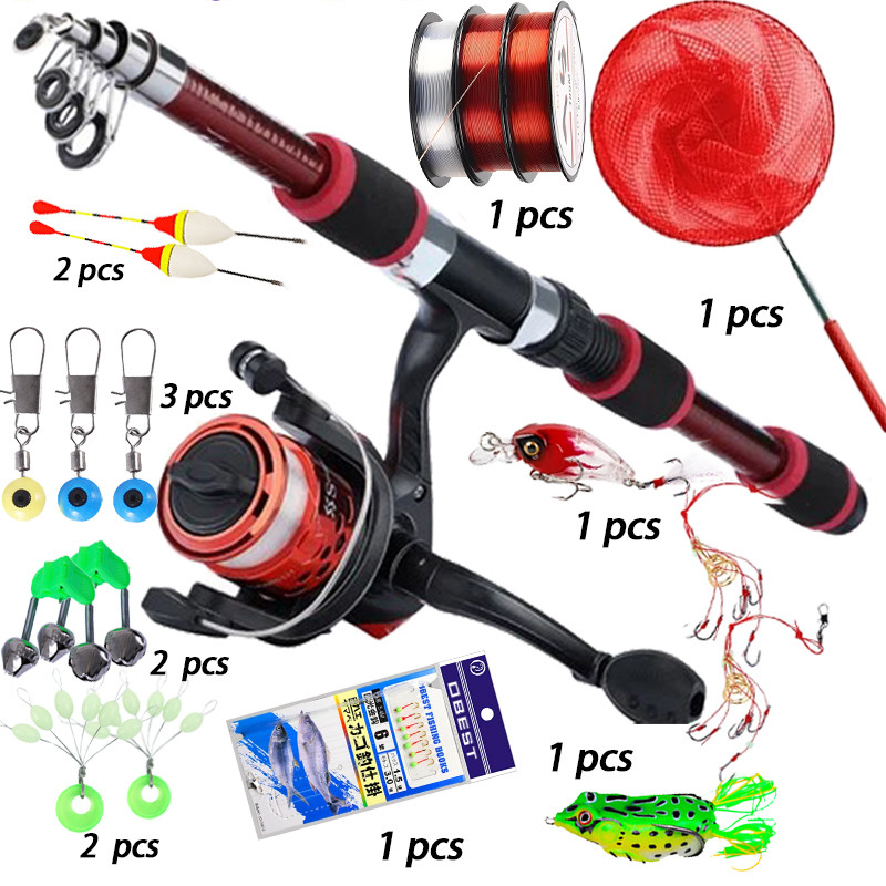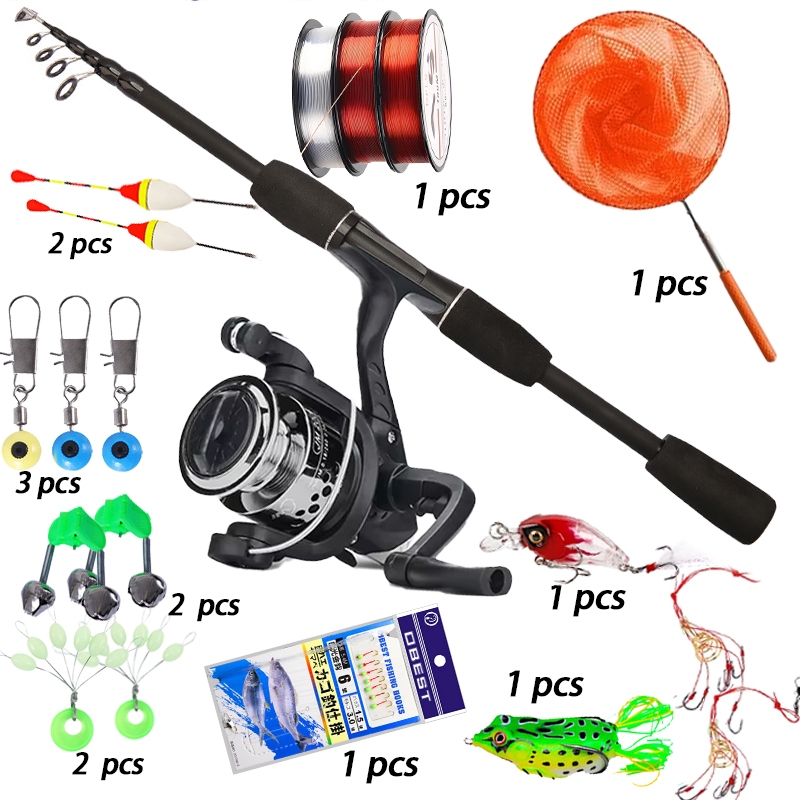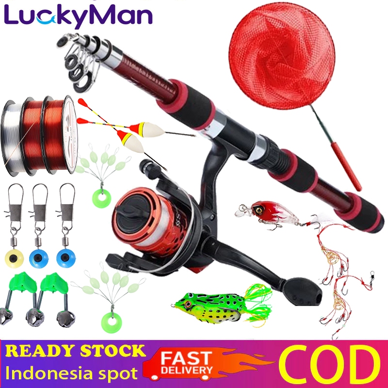 LUCKYMAN 1.8M Joran Pancing Set 5.2:1 Gear Ratio Reel Pancing Spinning Fishing Reel Combo