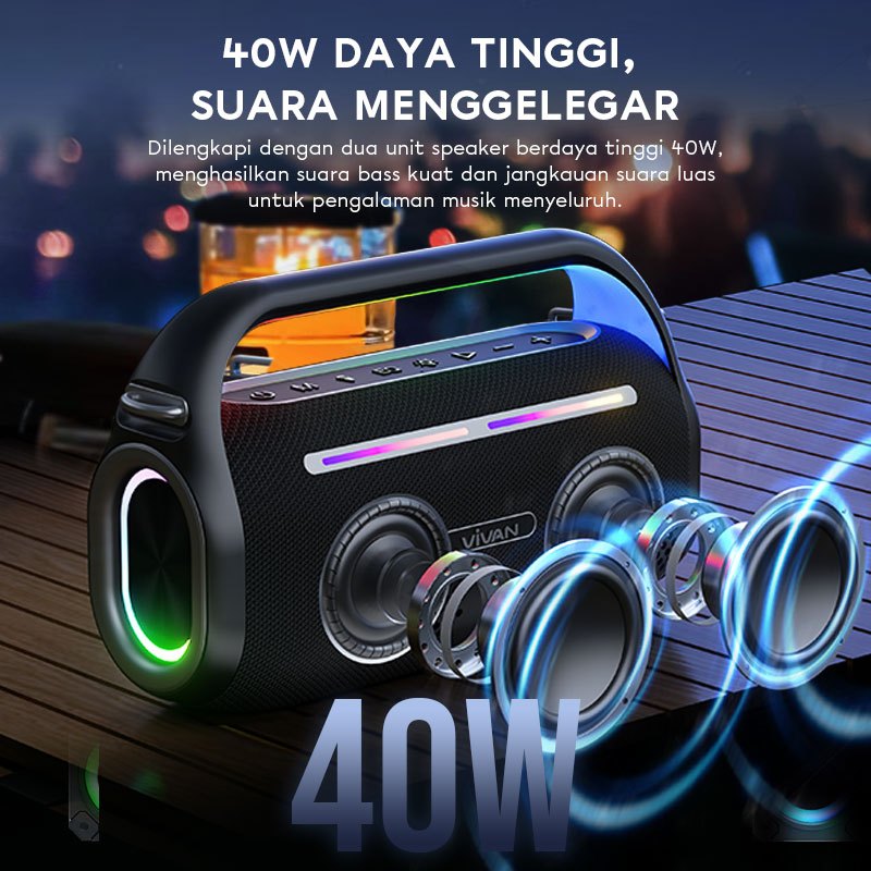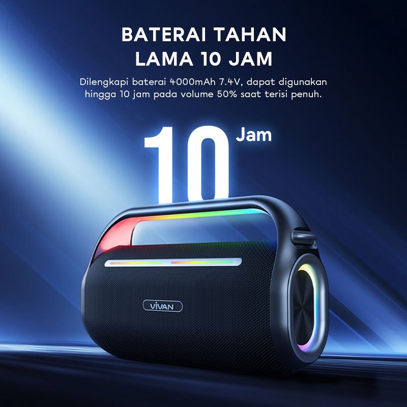 VIVAN Speaker Karaoke BT v5.4 RGB Mic Ganda Playtime 10 Jam 40W High Power VS70 Garansi 12 Bulan