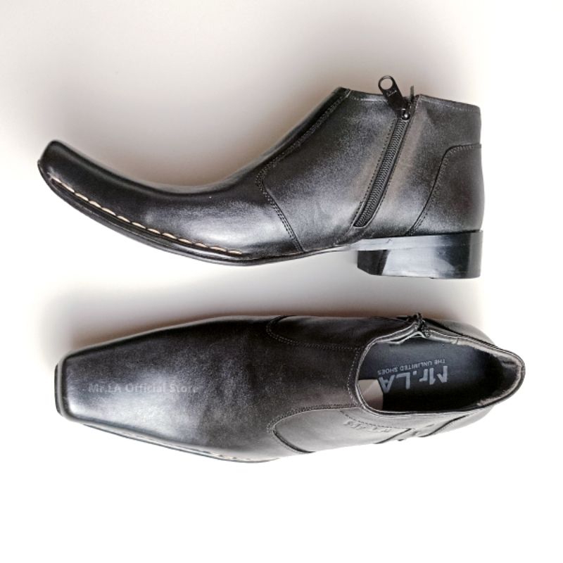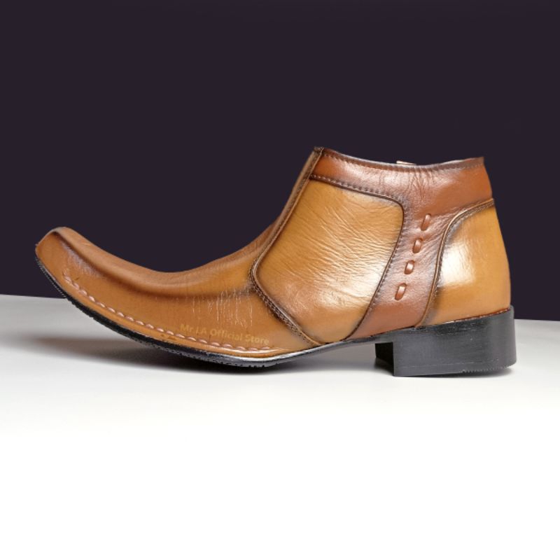 Mr. LA Sepatu Pantofel Formal Pria Kulit Asli Model Resleting Samping Warna Hitam Tan Size 38-45