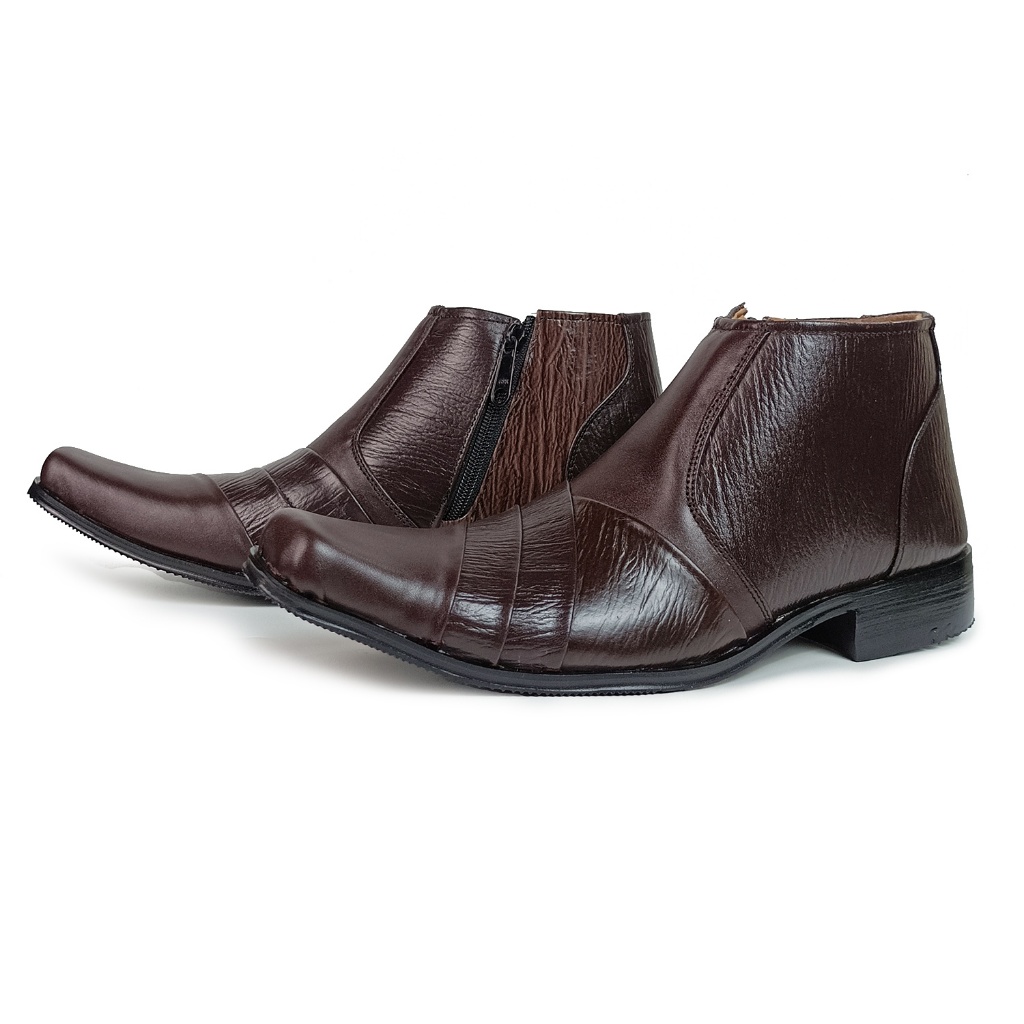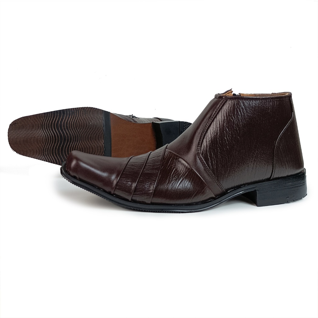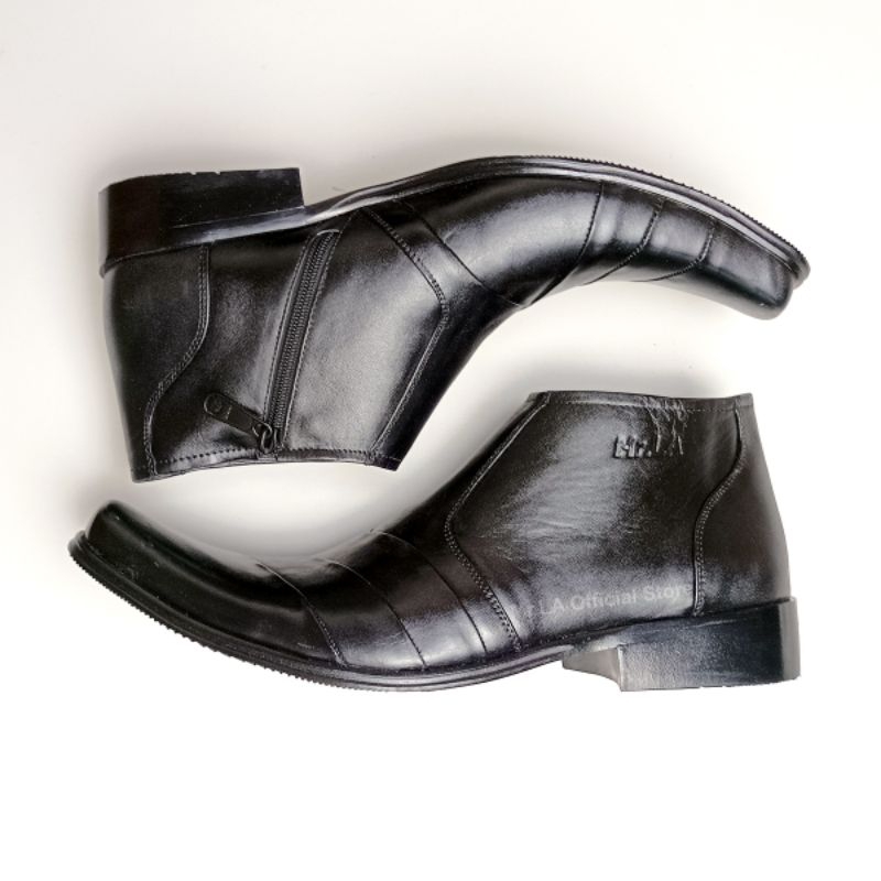 Mr. LA Sepatu Pria Formal Kulit Asli Pantofel Tinggi Resleting Samping Warna Hitam Tan Size 38-45